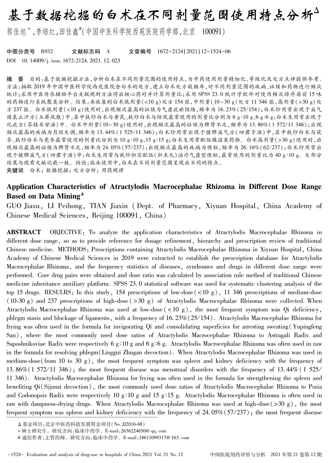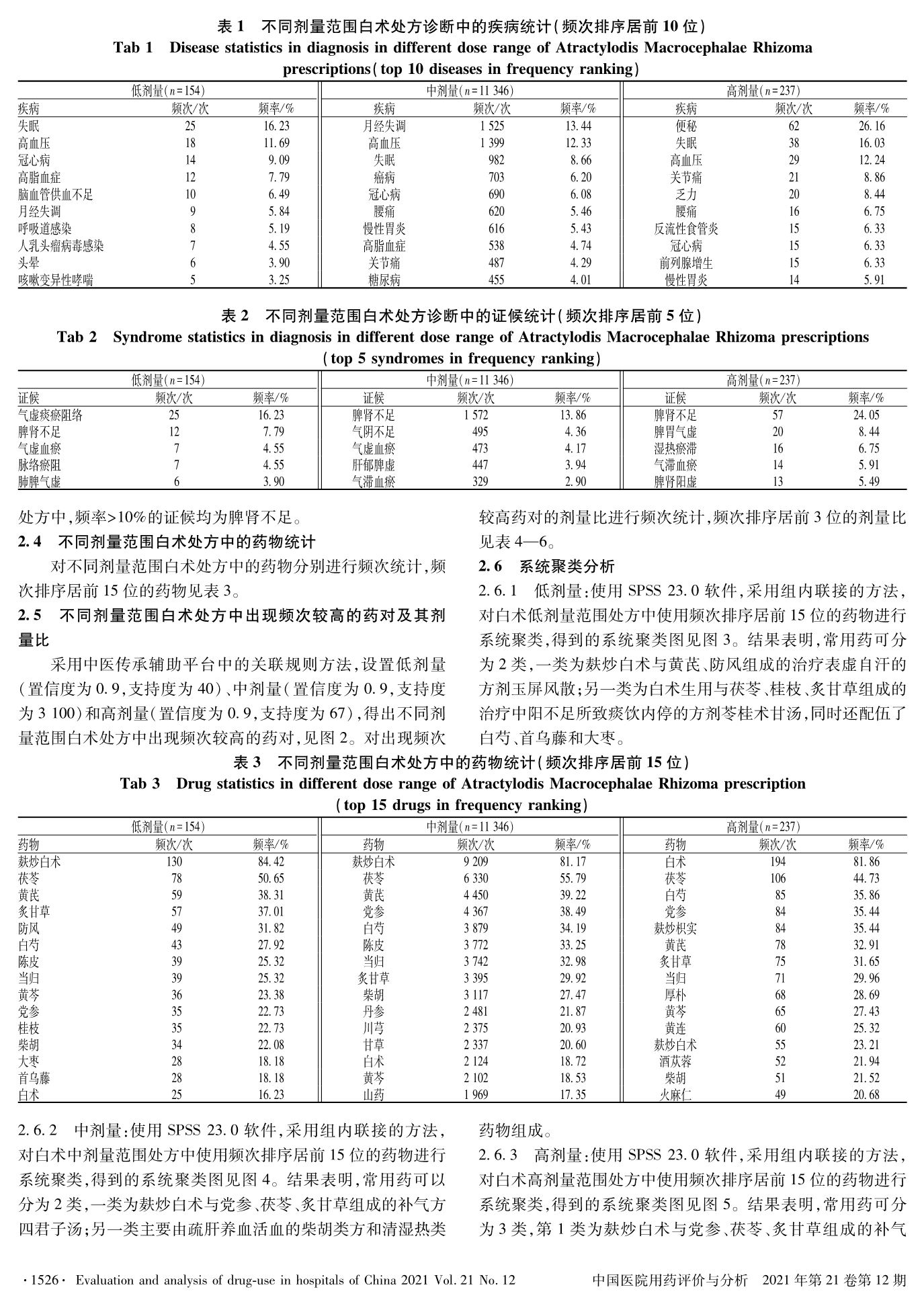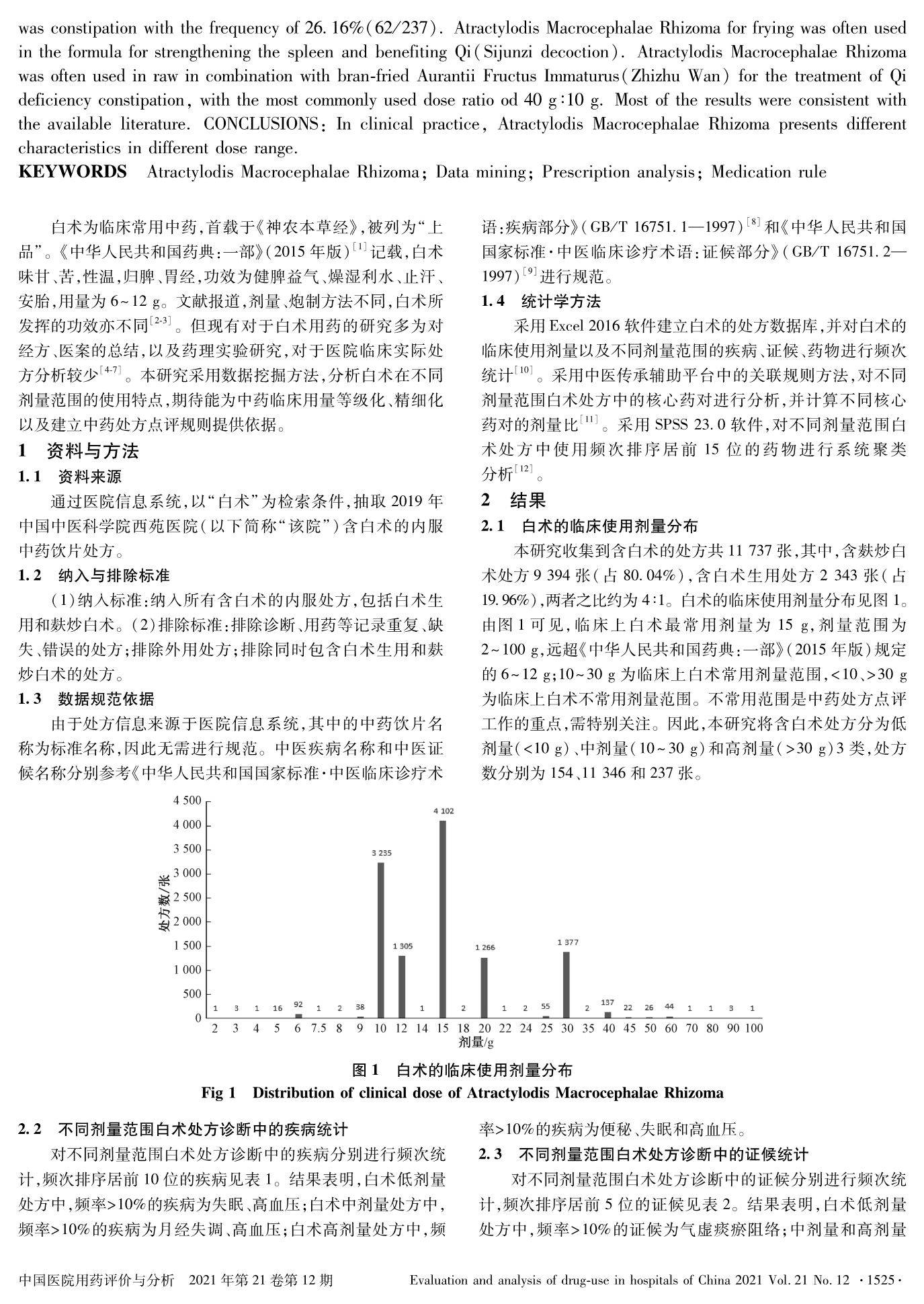 基于數(shù)據(jù)挖掘的白術(shù)在不同劑量范圍使用特點分析
