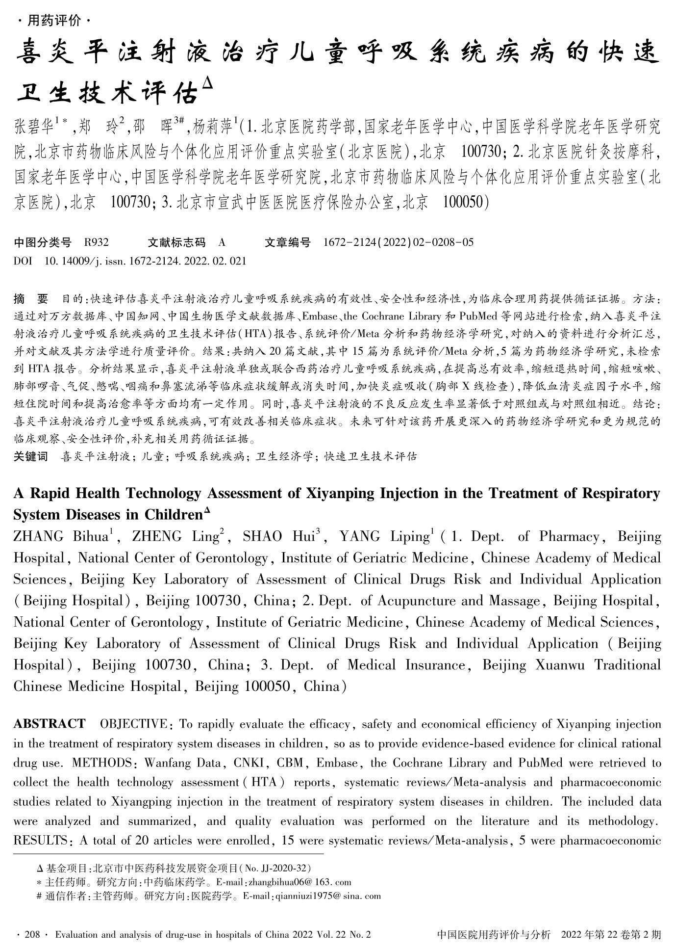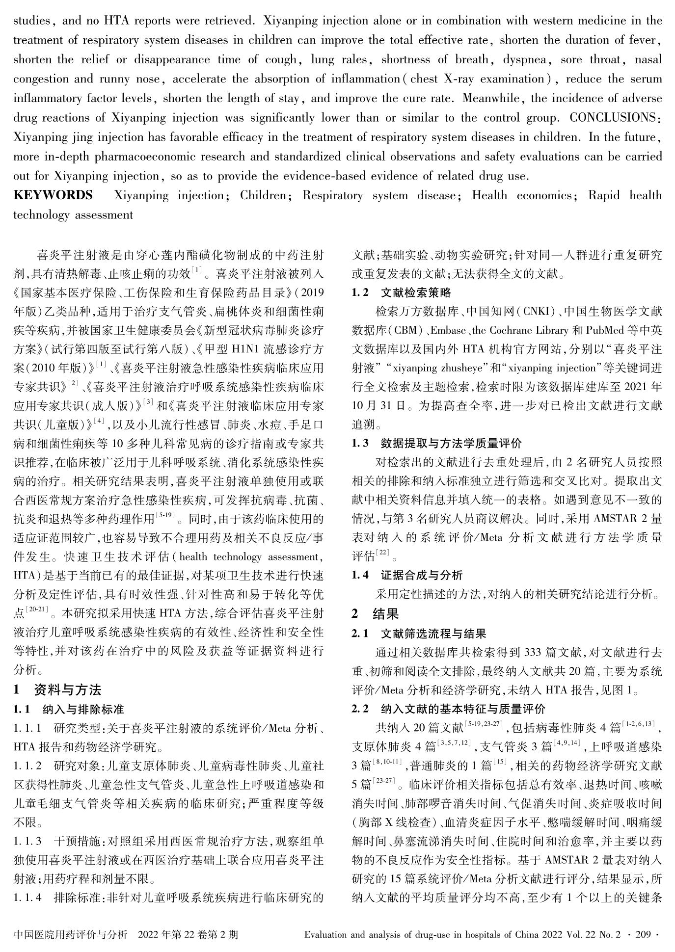 喜炎平注射液治療兒童呼吸系統(tǒng)疾病的快速衛(wèi)生技術(shù)評估