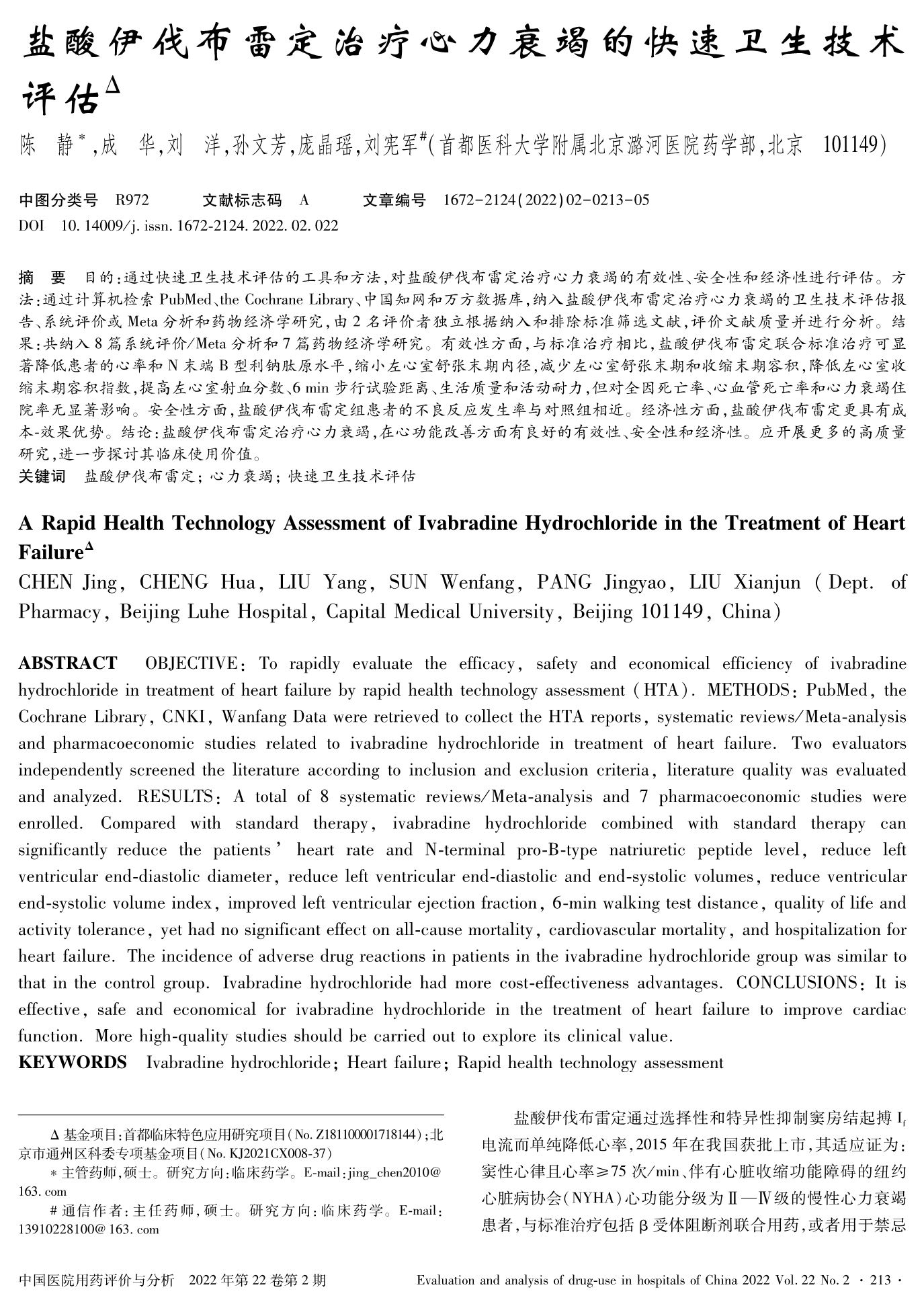 鹽酸伊伐布雷定治療心力衰竭的快速衛(wèi)生技術(shù)評(píng)估