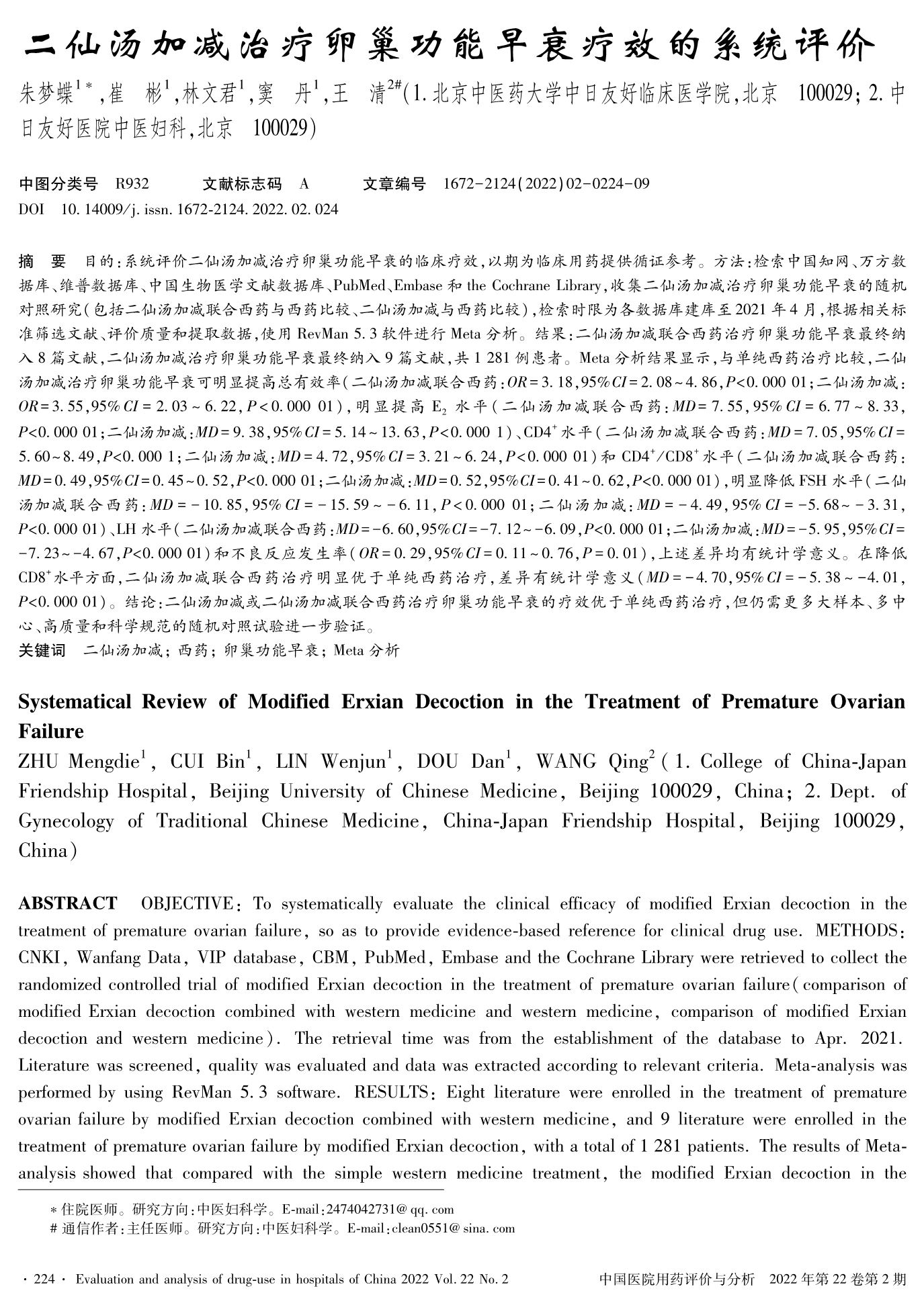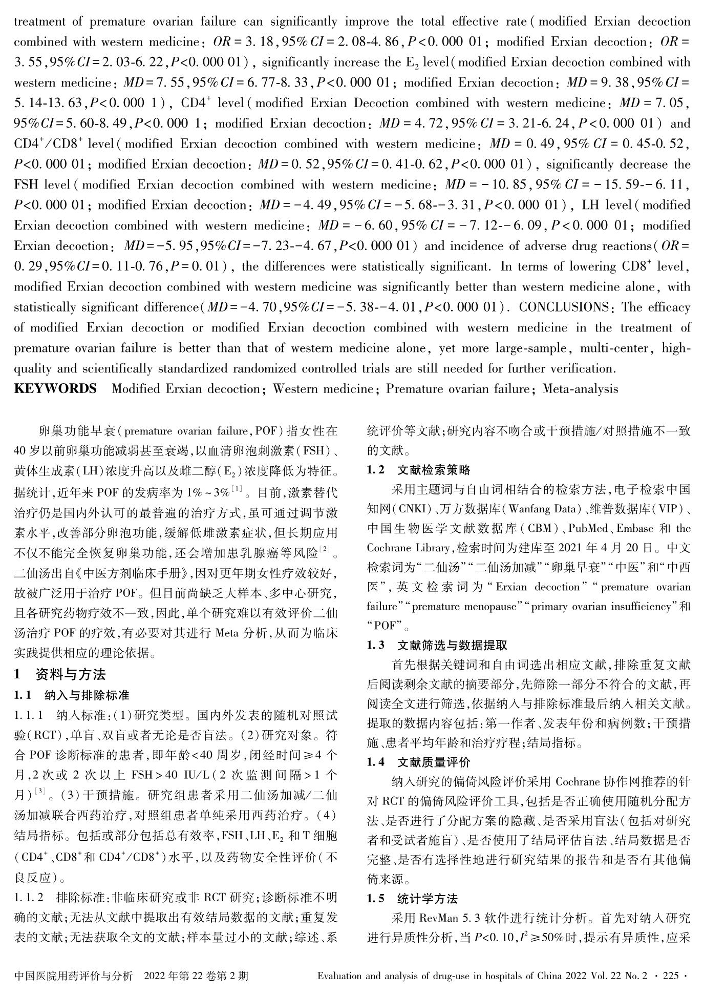 二仙湯加減治療卵巢功能早衰療效的系統(tǒng)評價(jià)