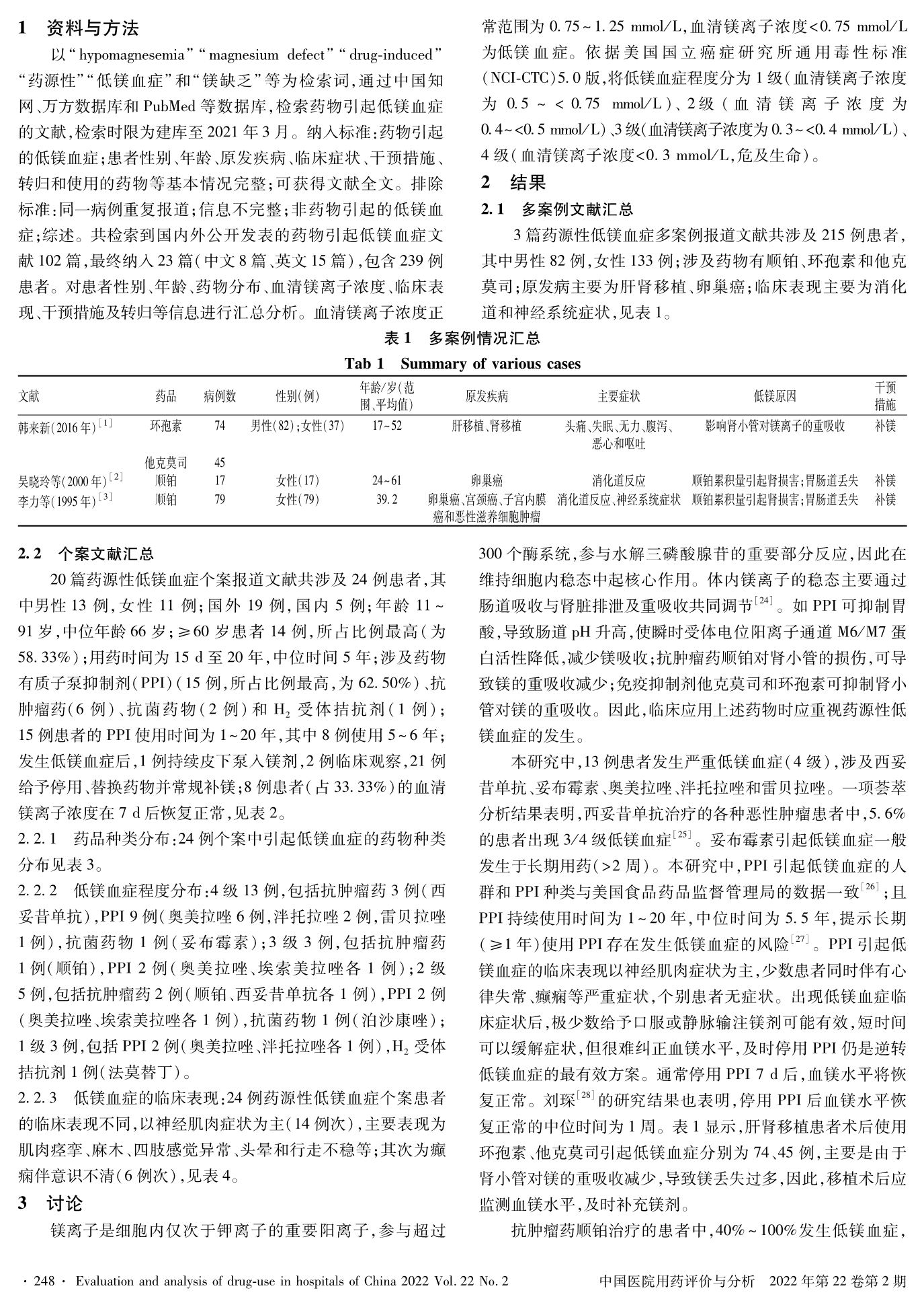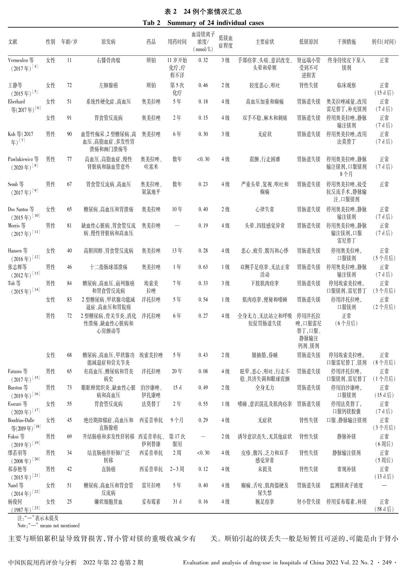 239例藥源性低鎂血癥文獻(xiàn)分析