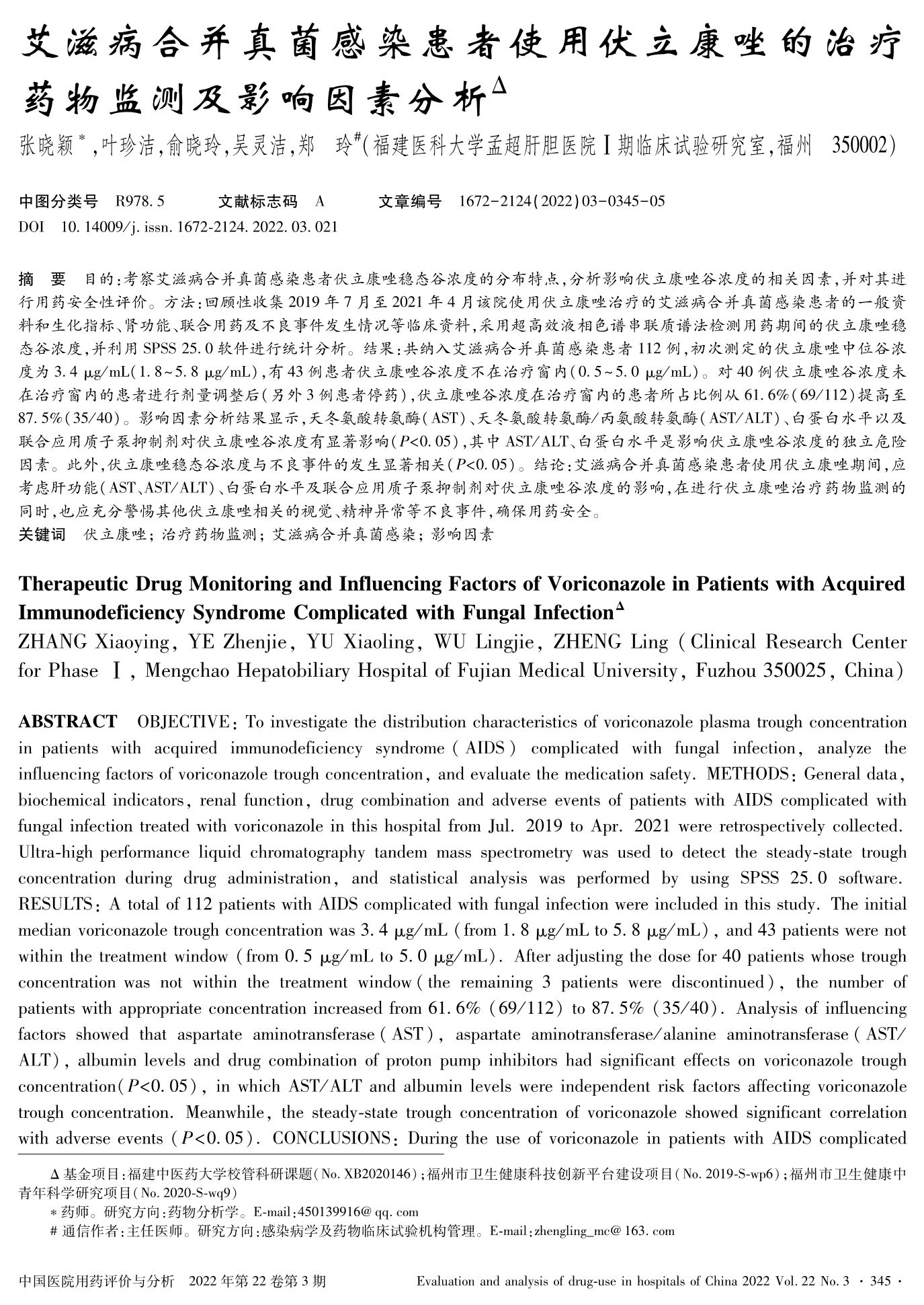 艾滋病合并真菌感染患者使用伏立康唑的治療藥物監(jiān)測及影響因素分析