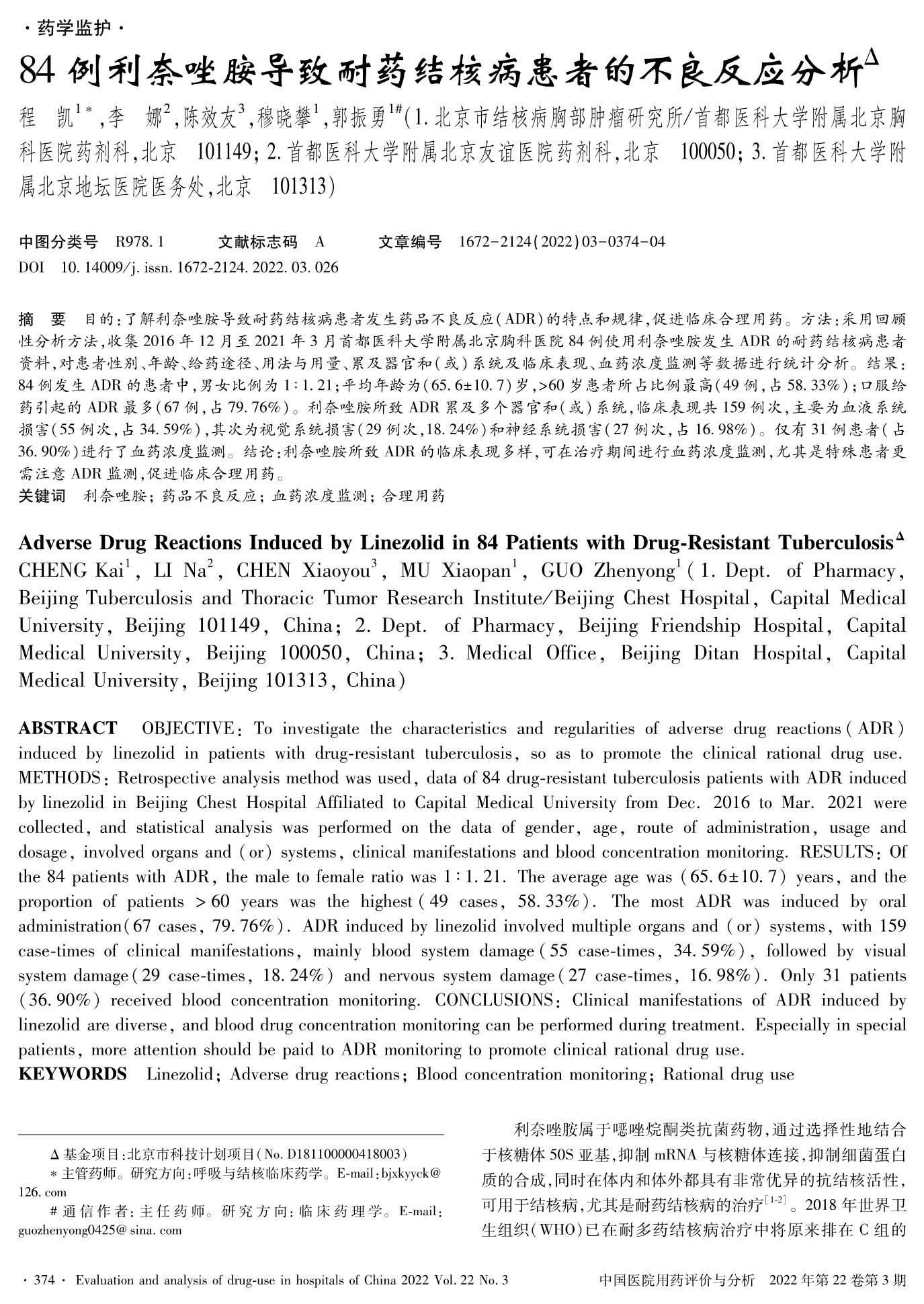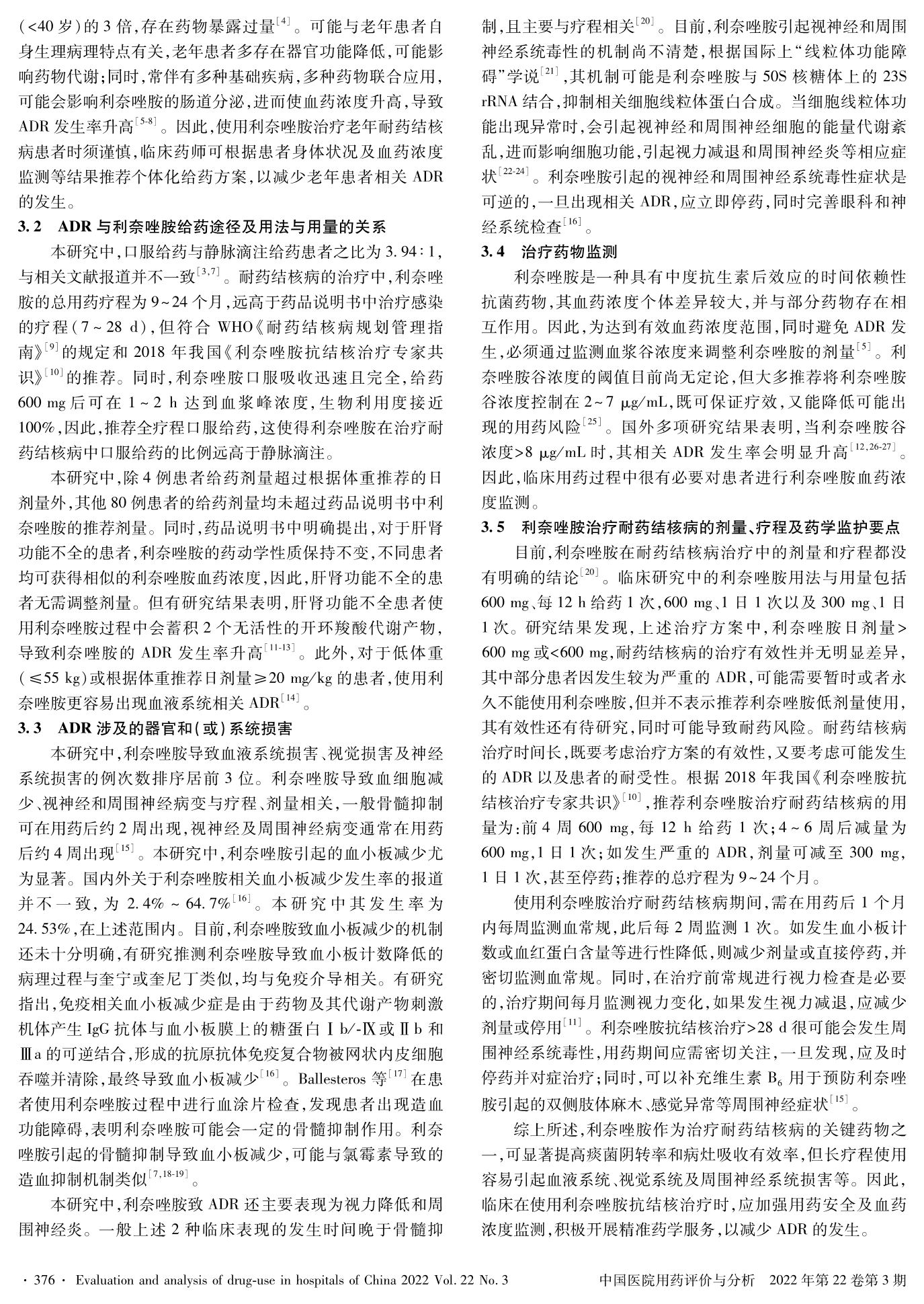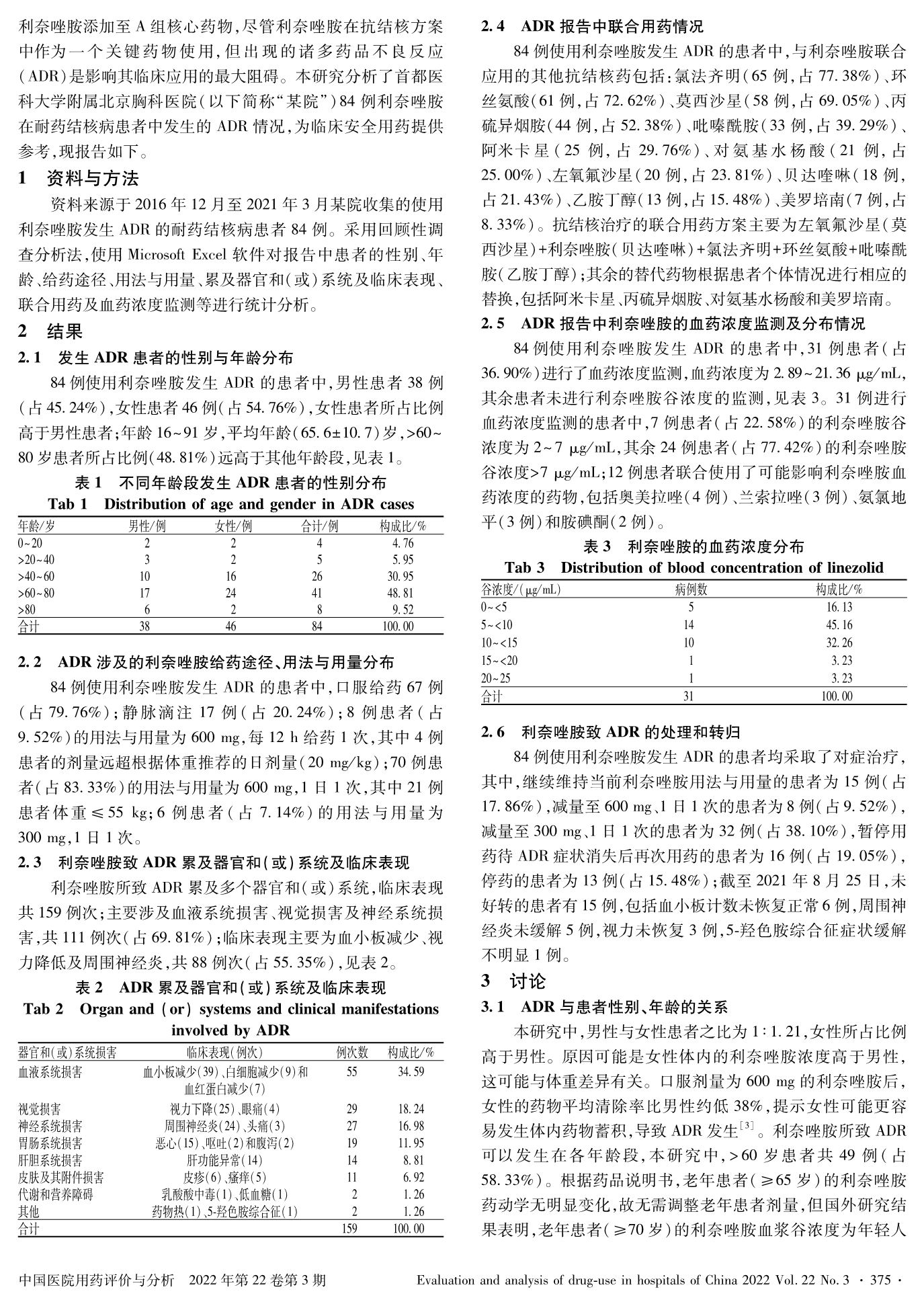 84 例利奈唑胺導(dǎo)致耐藥結(jié)核病患者的不良反應(yīng)分析