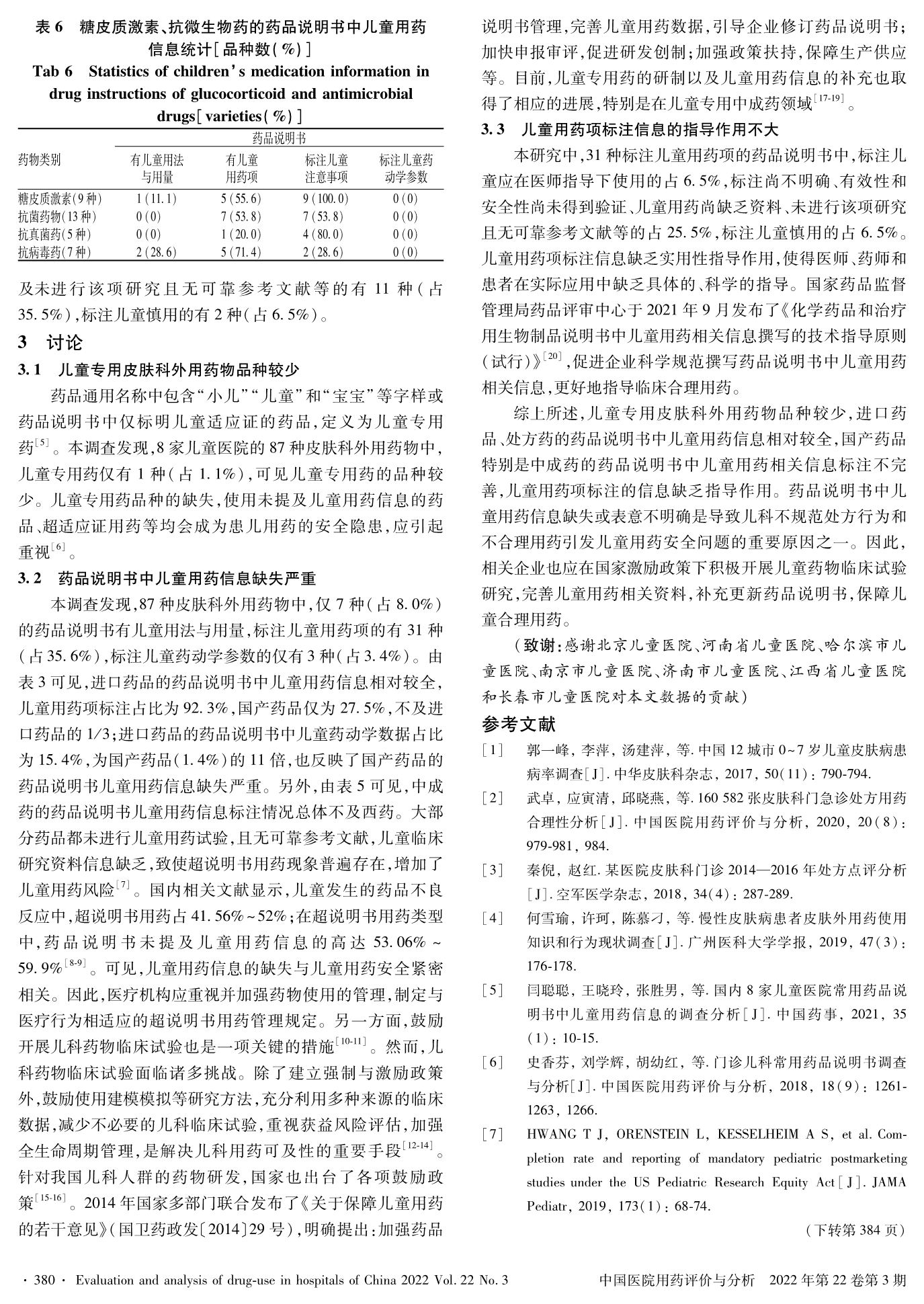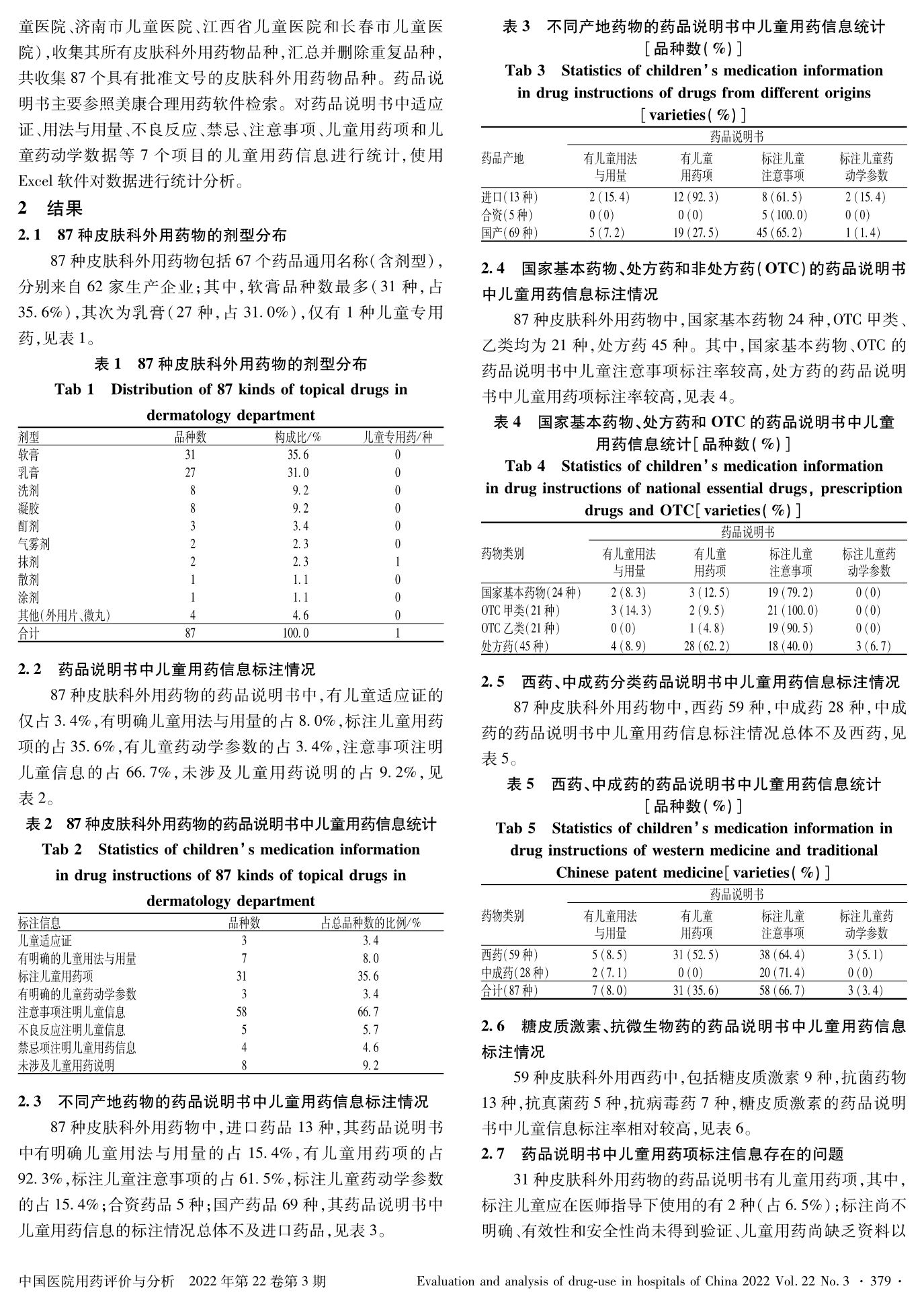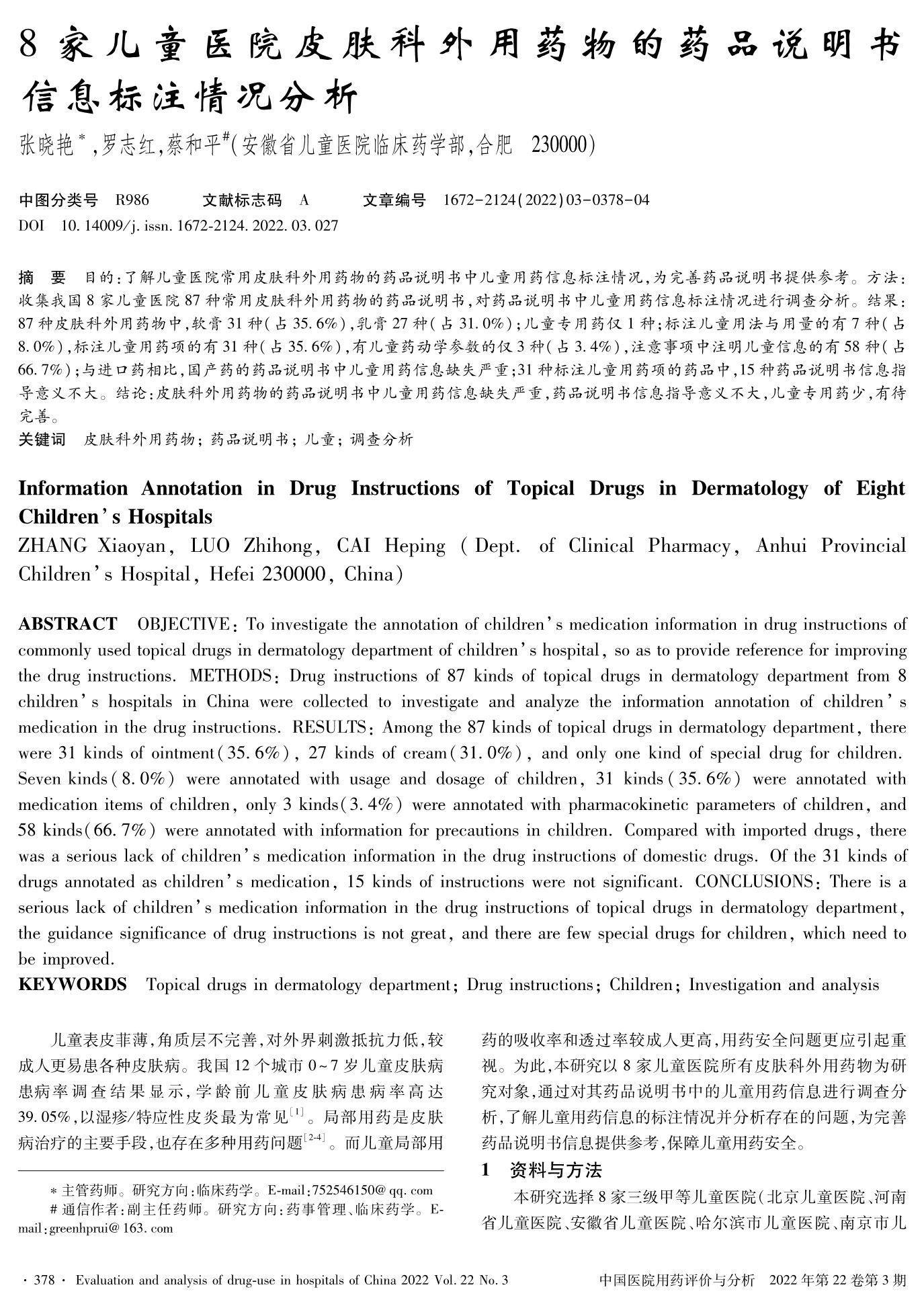 8家兒童醫(yī)院皮膚科外用藥物的藥品說明書信息標注情況分析