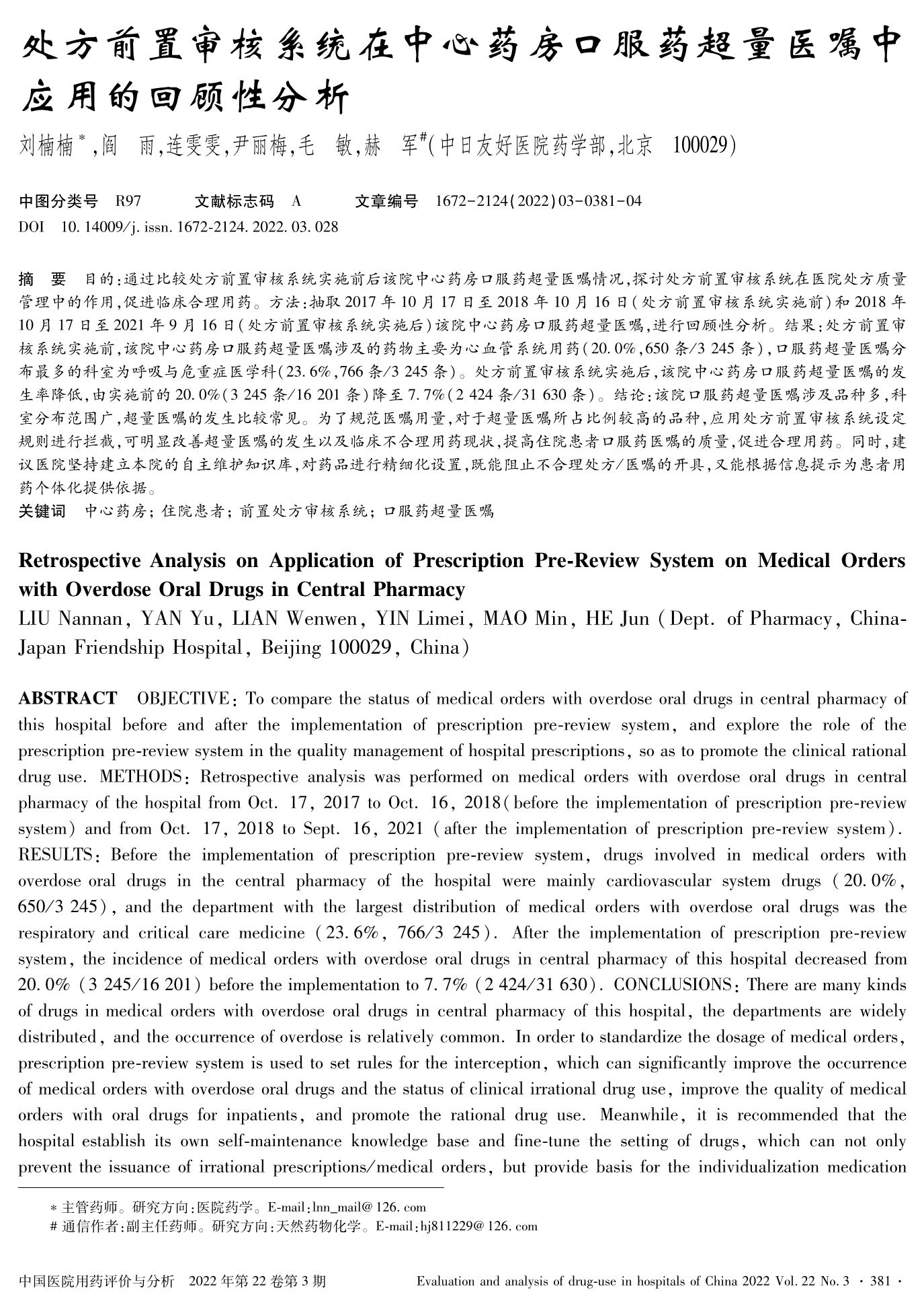 處方前置審核系統(tǒng)在中心藥房口服藥超量醫(yī)囑中應(yīng)用的回顧性分析