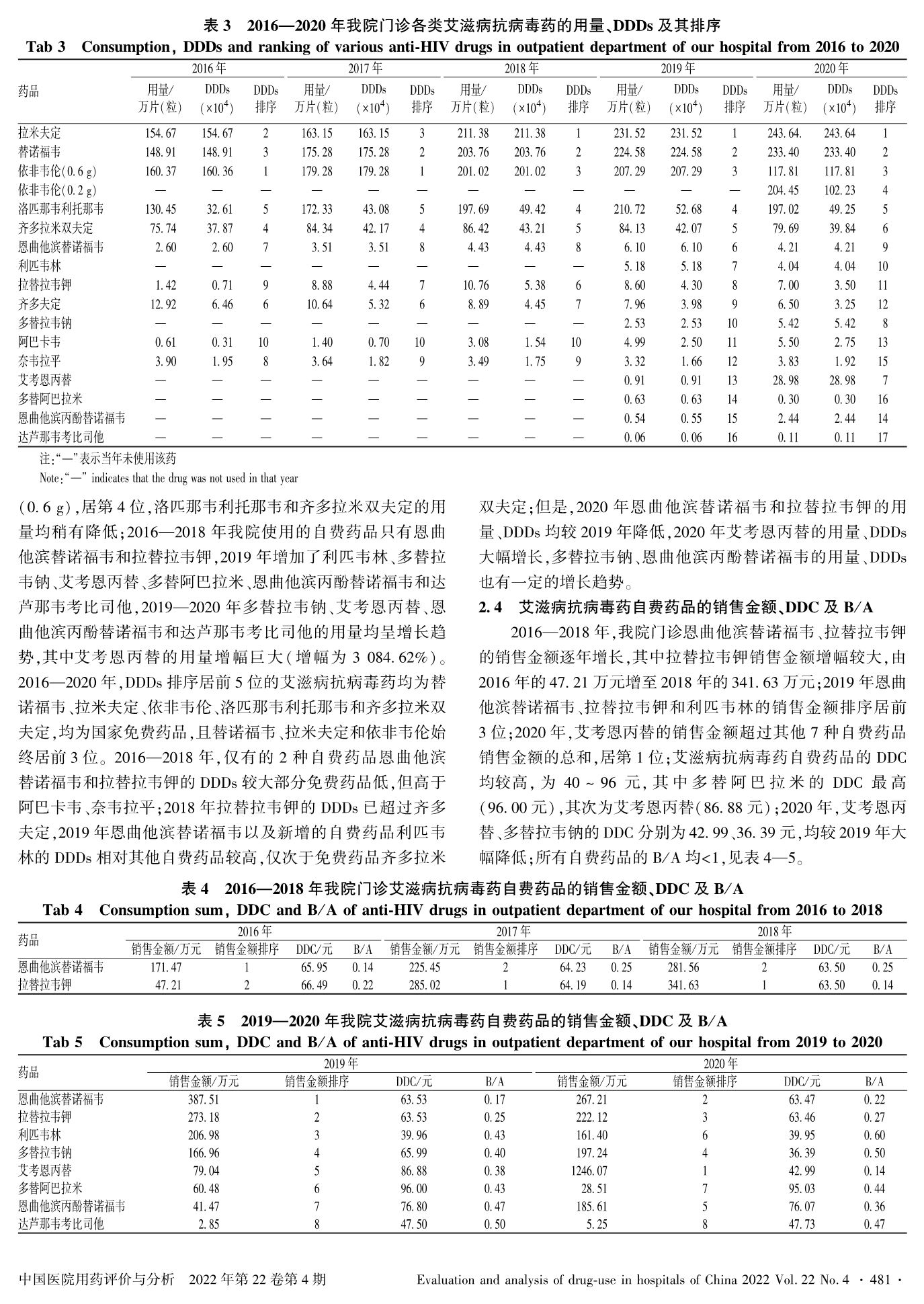 2016—2020年我院門(mén)診艾滋病抗病毒藥使用情況分析