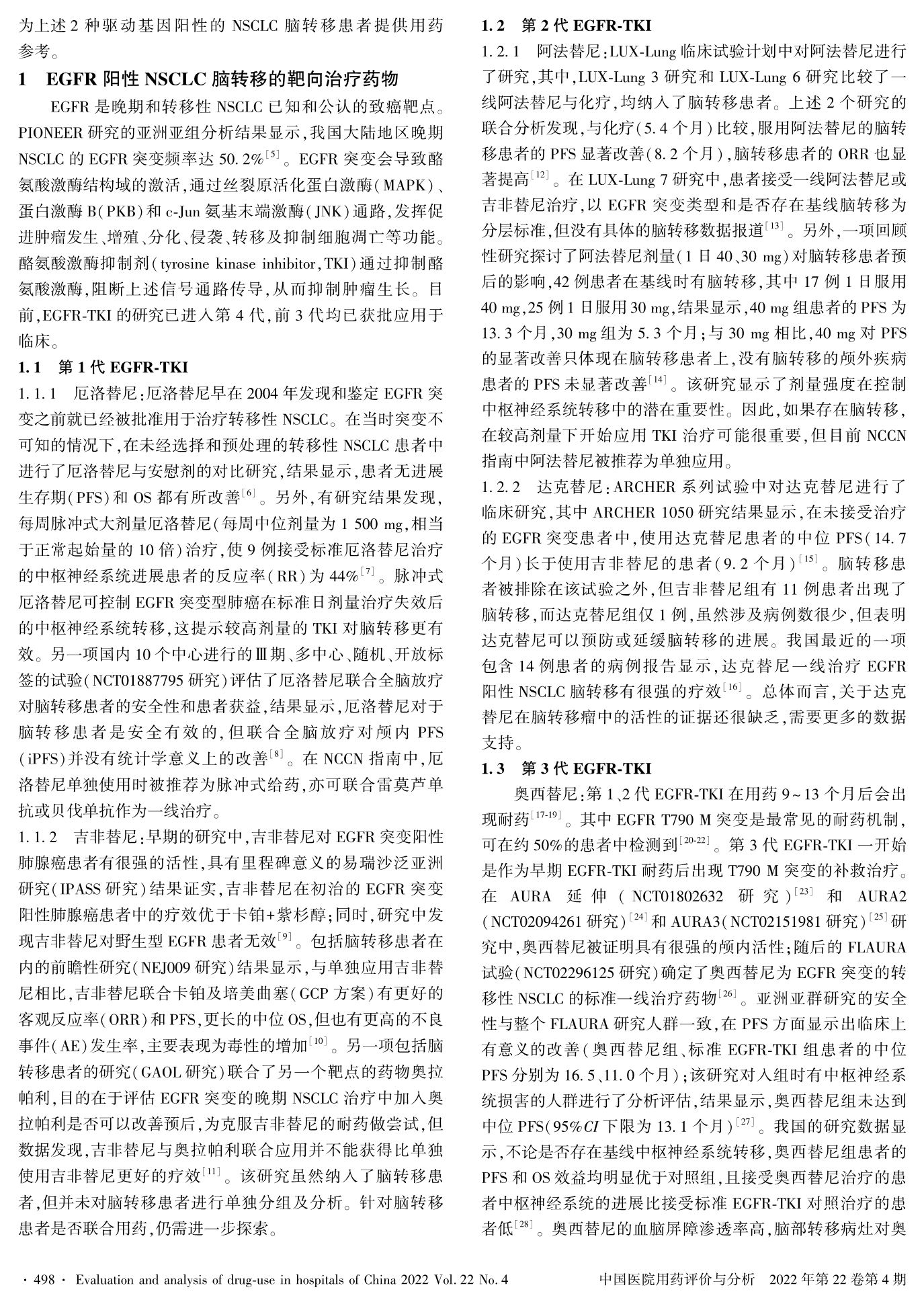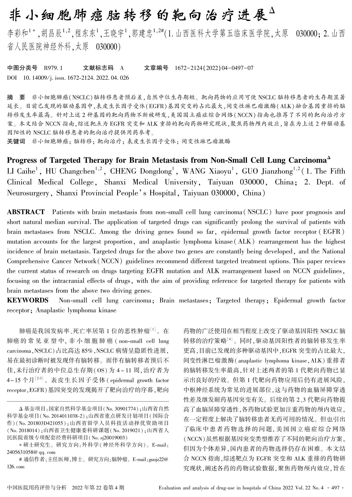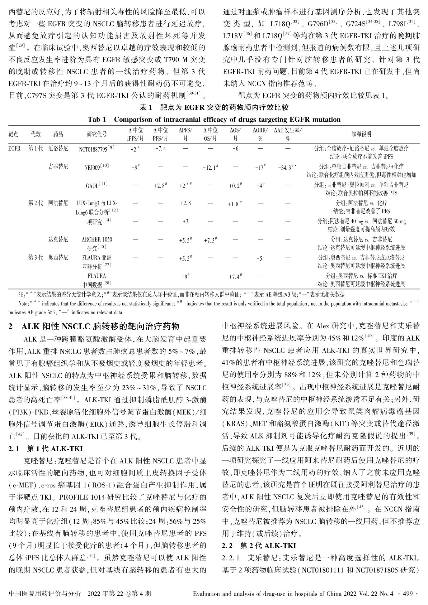 非小細胞肺癌腦轉(zhuǎn)移的靶向治療進展