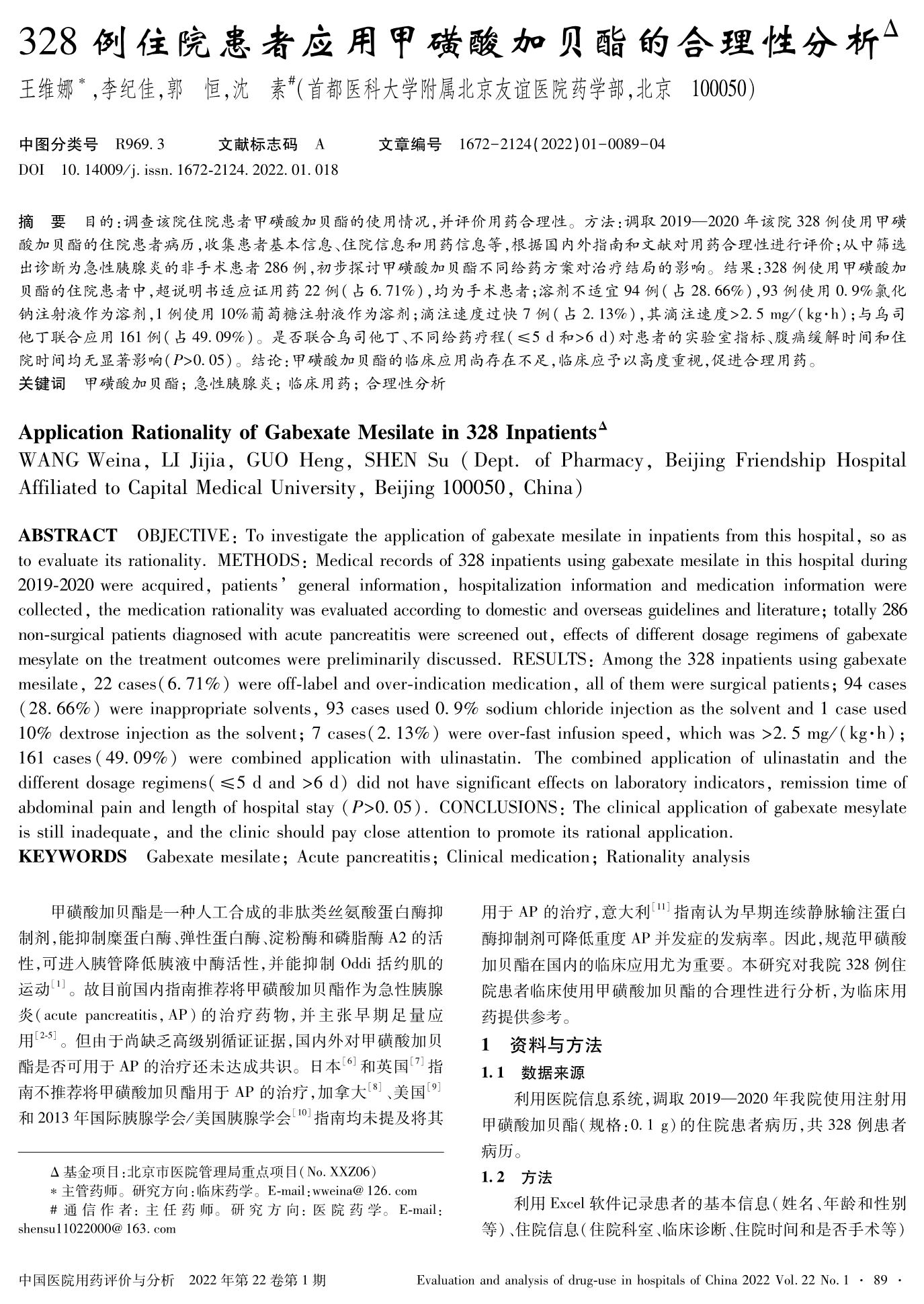 328例住院患者應(yīng)用甲磺酸加貝酯的合理性分析