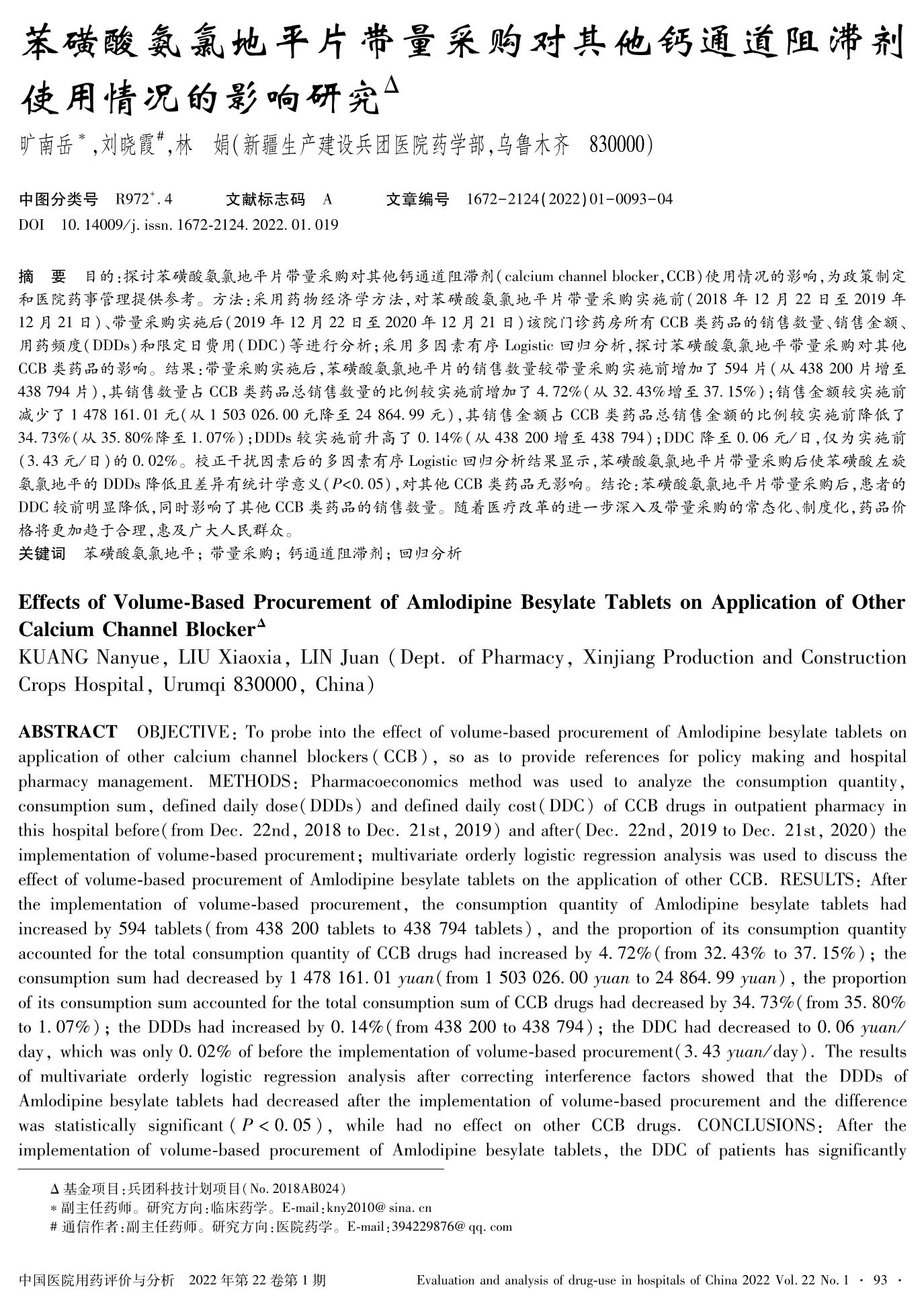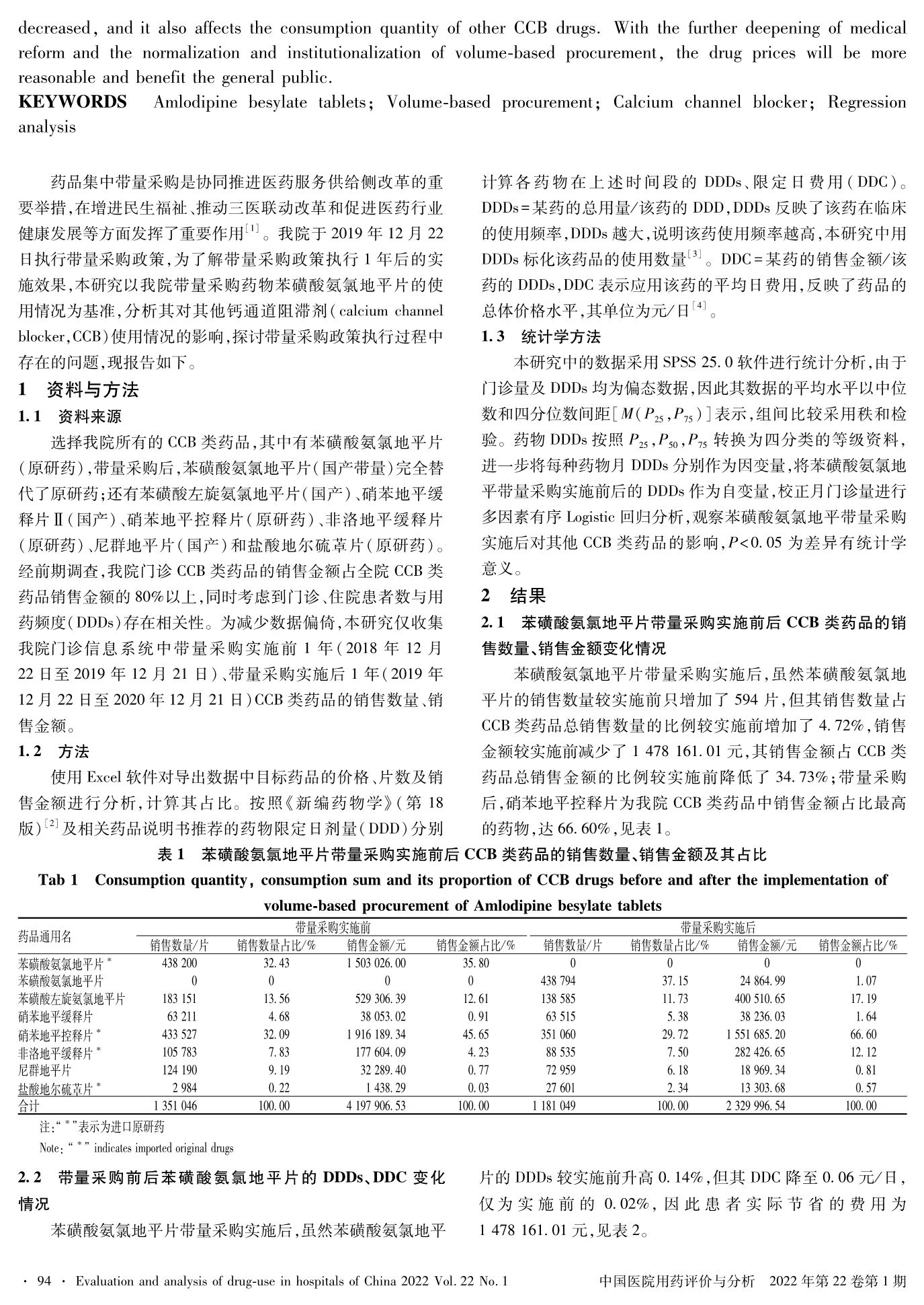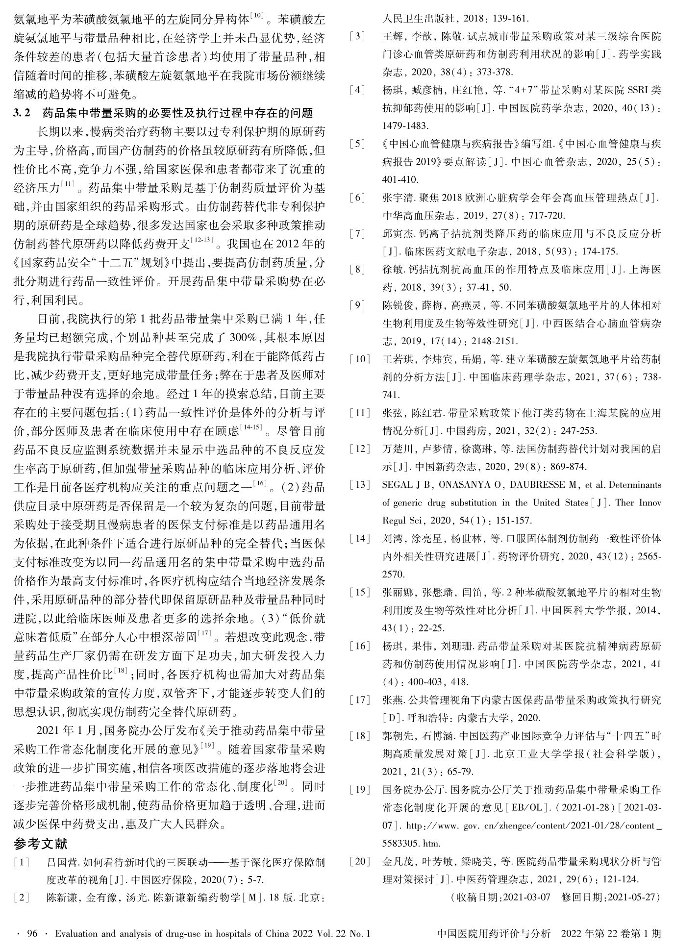 苯磺酸氨氯地平片帶量采購對其他鈣通道阻滯劑使用情況的影響研究