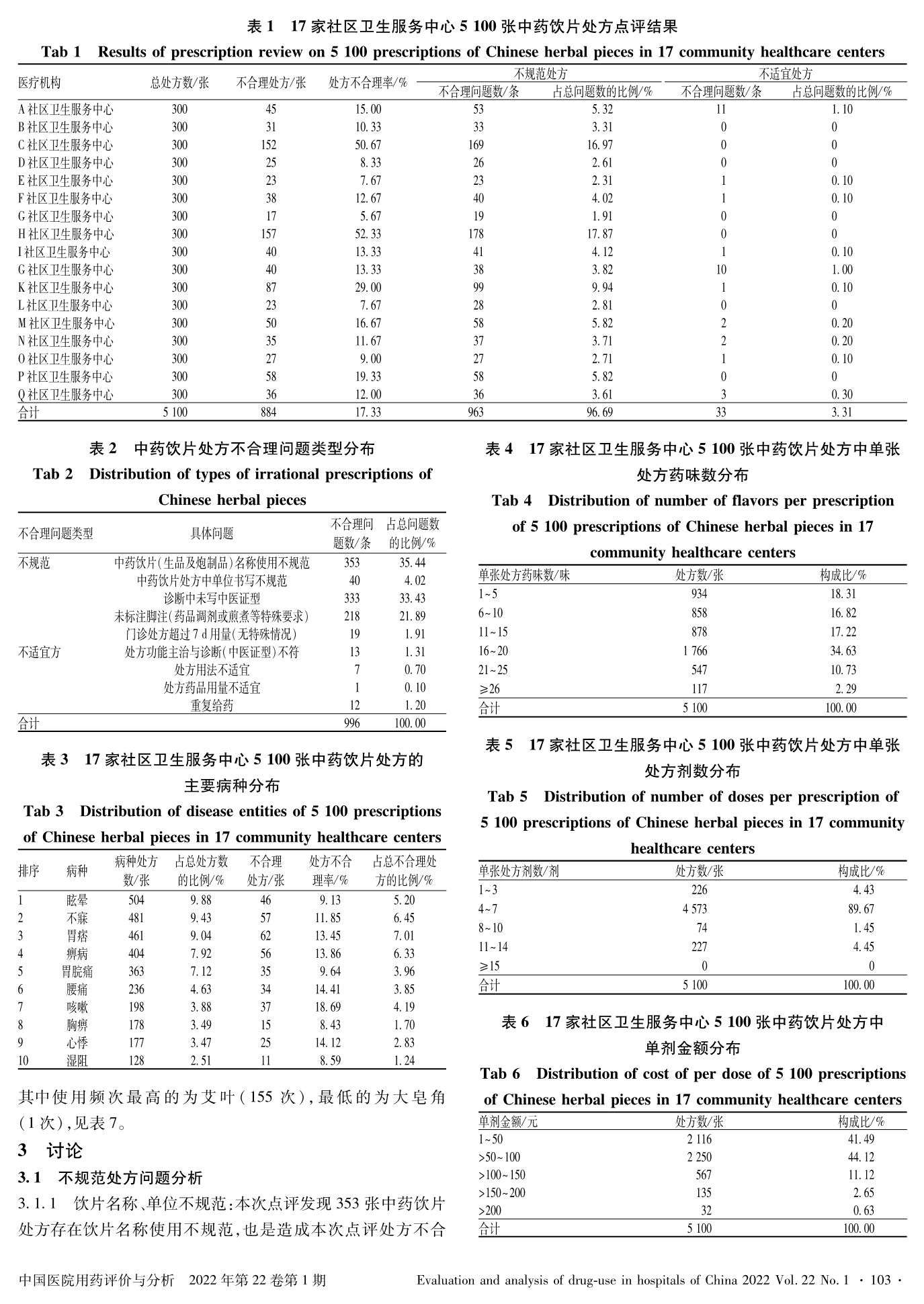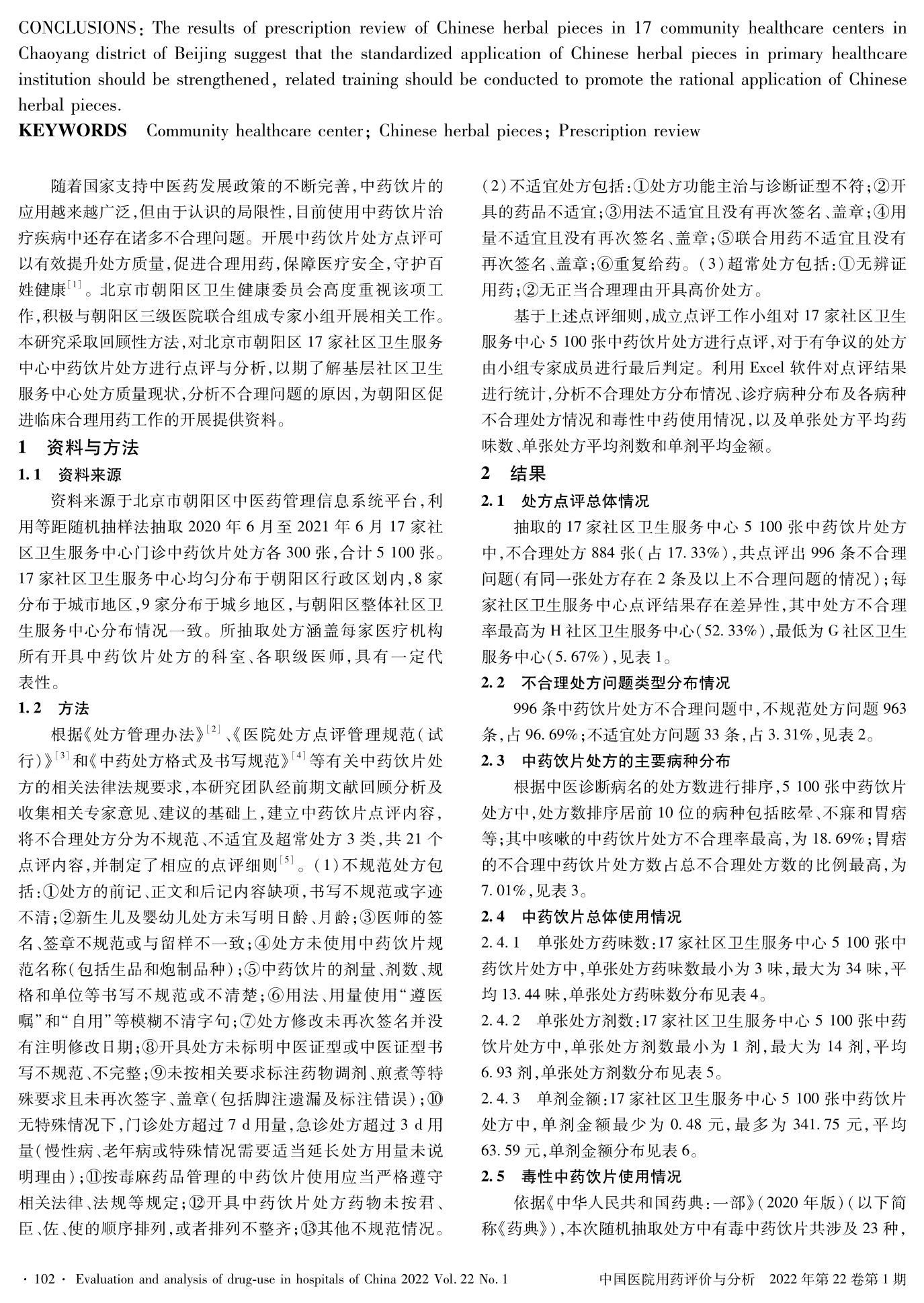 北京市朝陽區(qū)17家社區(qū)衛(wèi)生服務(wù)中心5100張中藥飲片處方點評與分析