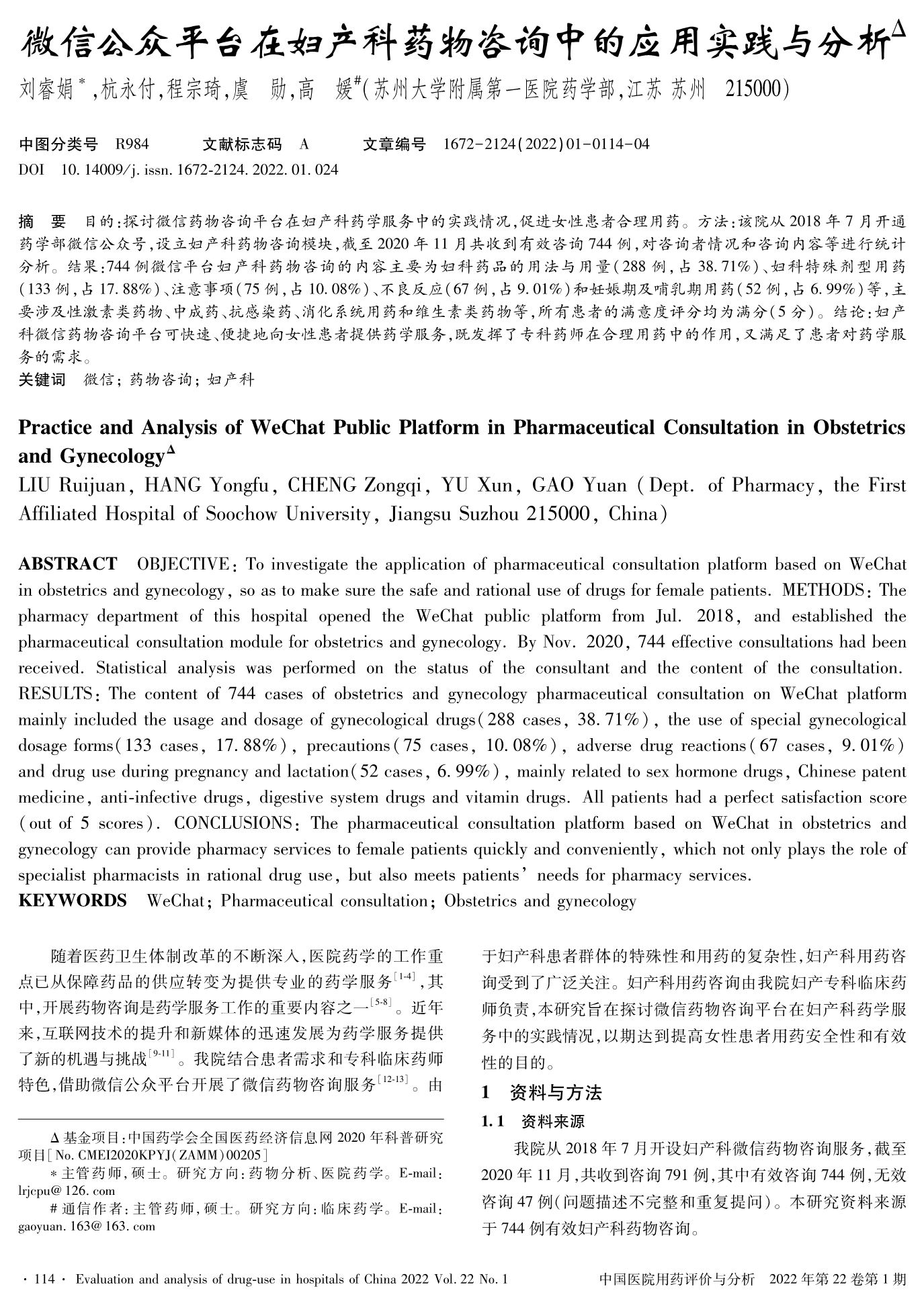 微信公眾平臺在婦產(chǎn)科藥物咨詢中的應(yīng)用實踐與分析