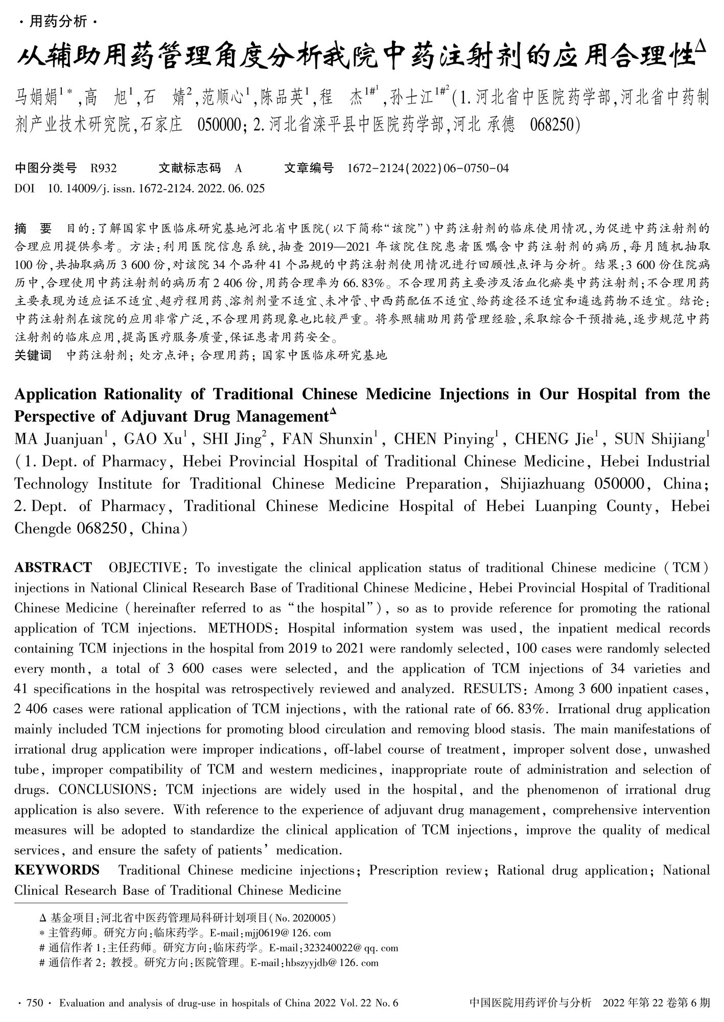 從輔助用藥管理角度分析我院中藥注射劑的應用合理性