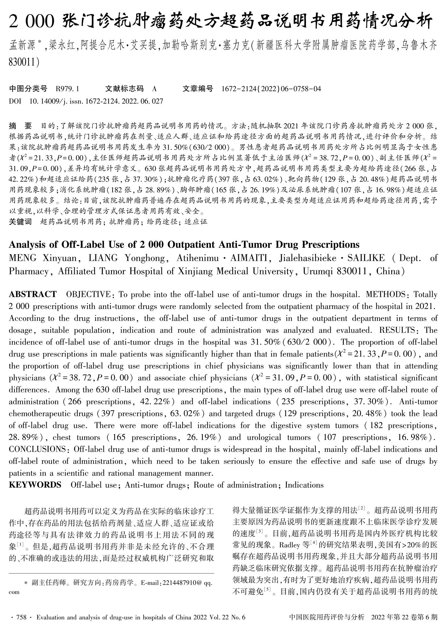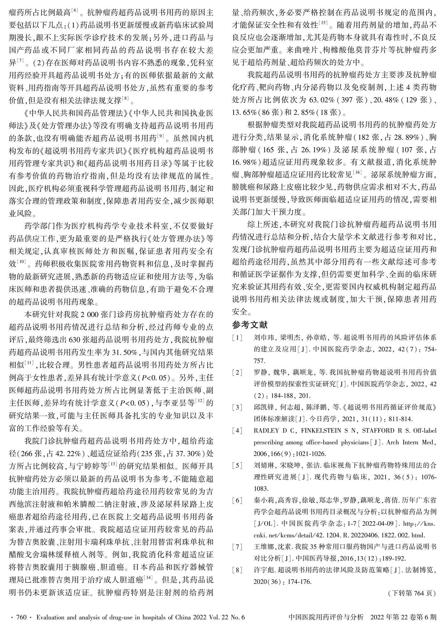 2000張門診抗腫瘤藥處方超藥品說明書用藥情況分析