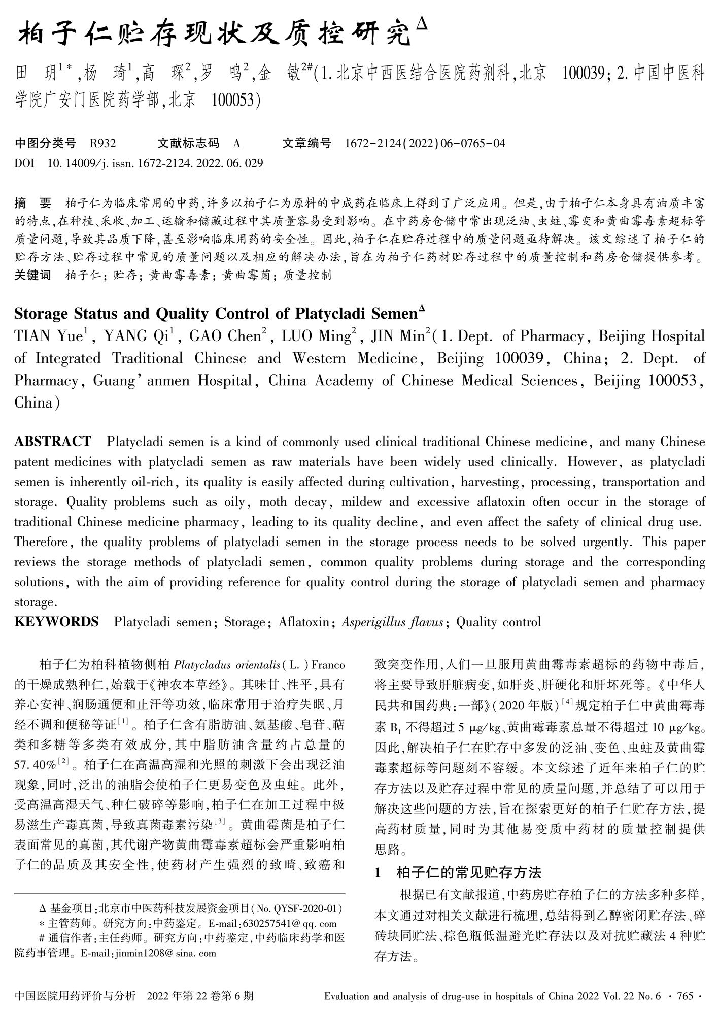 柏子仁貯存現(xiàn)狀及質(zhì)控研究