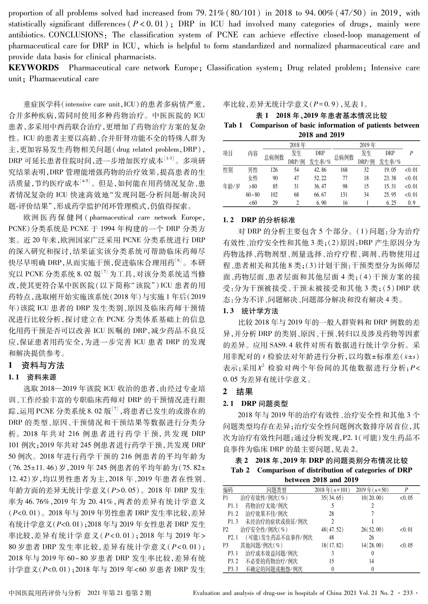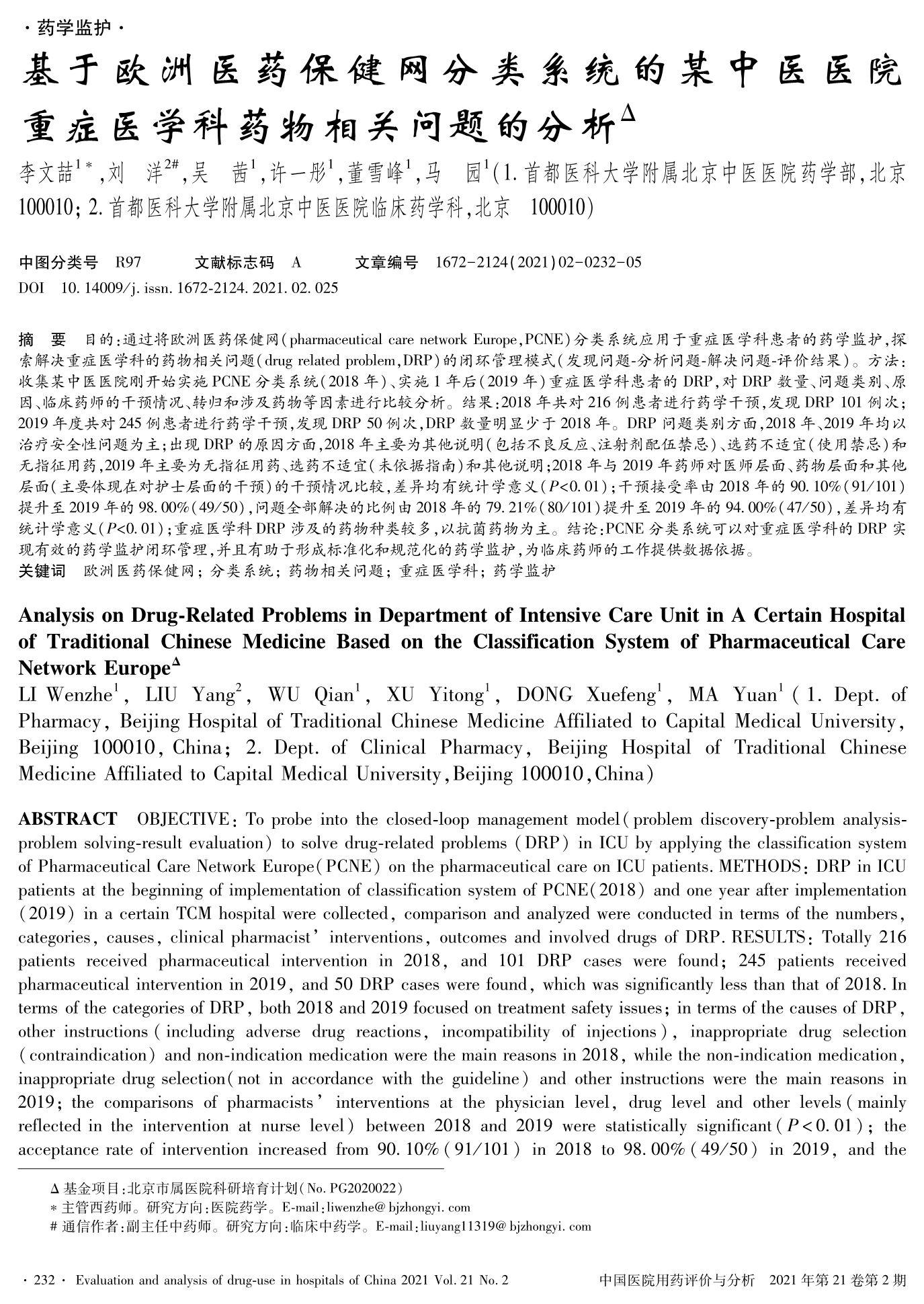 基于歐洲醫(yī)藥保健網(wǎng)分類(lèi)系統(tǒng)的某中醫(yī)醫(yī)院重癥醫(yī)學(xué)科藥物相關(guān)問(wèn)題的分析