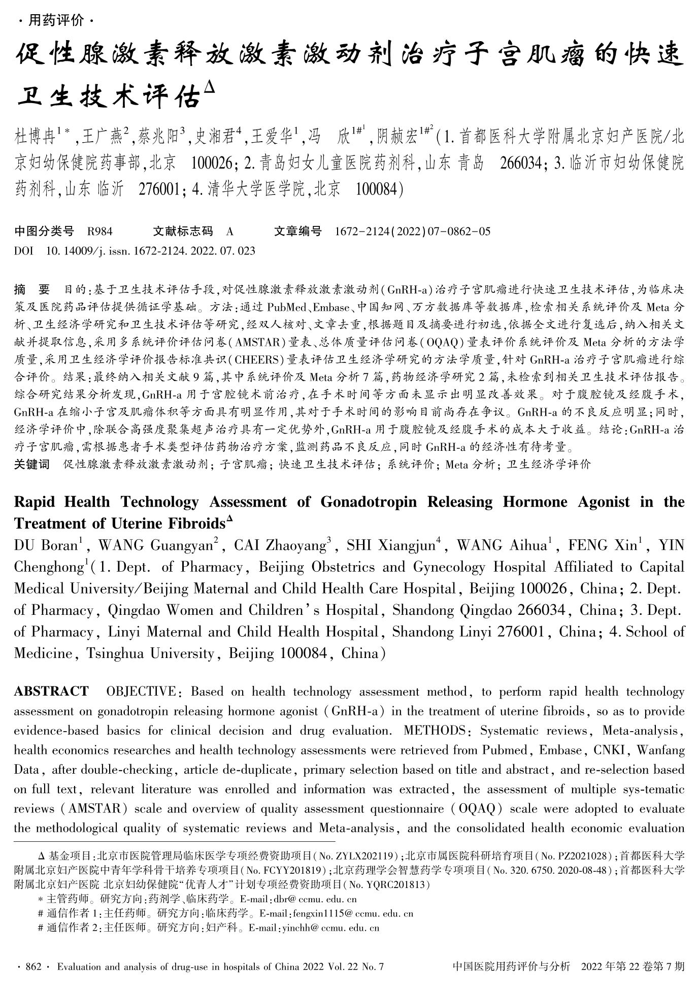 促性腺激素釋放激素激動劑治療子宮肌瘤的快速衛(wèi)生技術(shù)評估