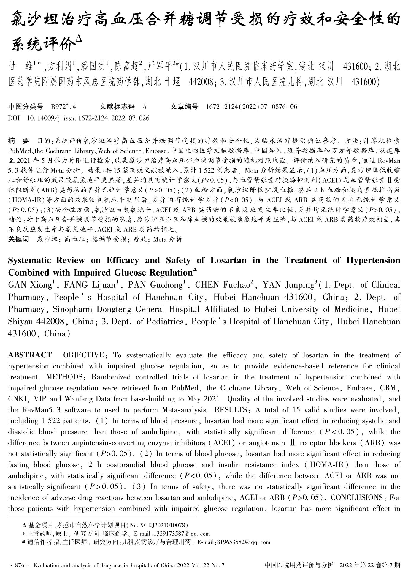 氯沙坦治療高血壓合并糖調(diào)節(jié)受損的療效和安全性的系統(tǒng)評(píng)價(jià)