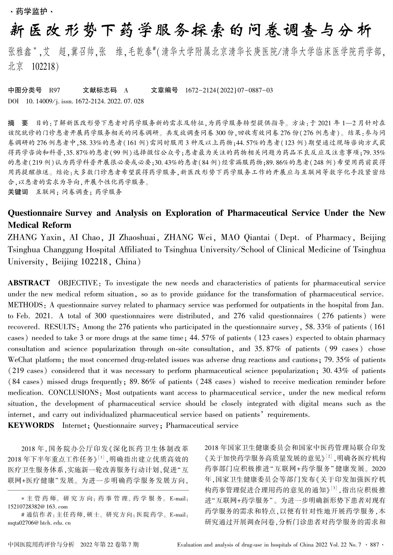 新醫(yī)改形勢(shì)下藥學(xué)服務(wù)探索的問卷調(diào)查與分析