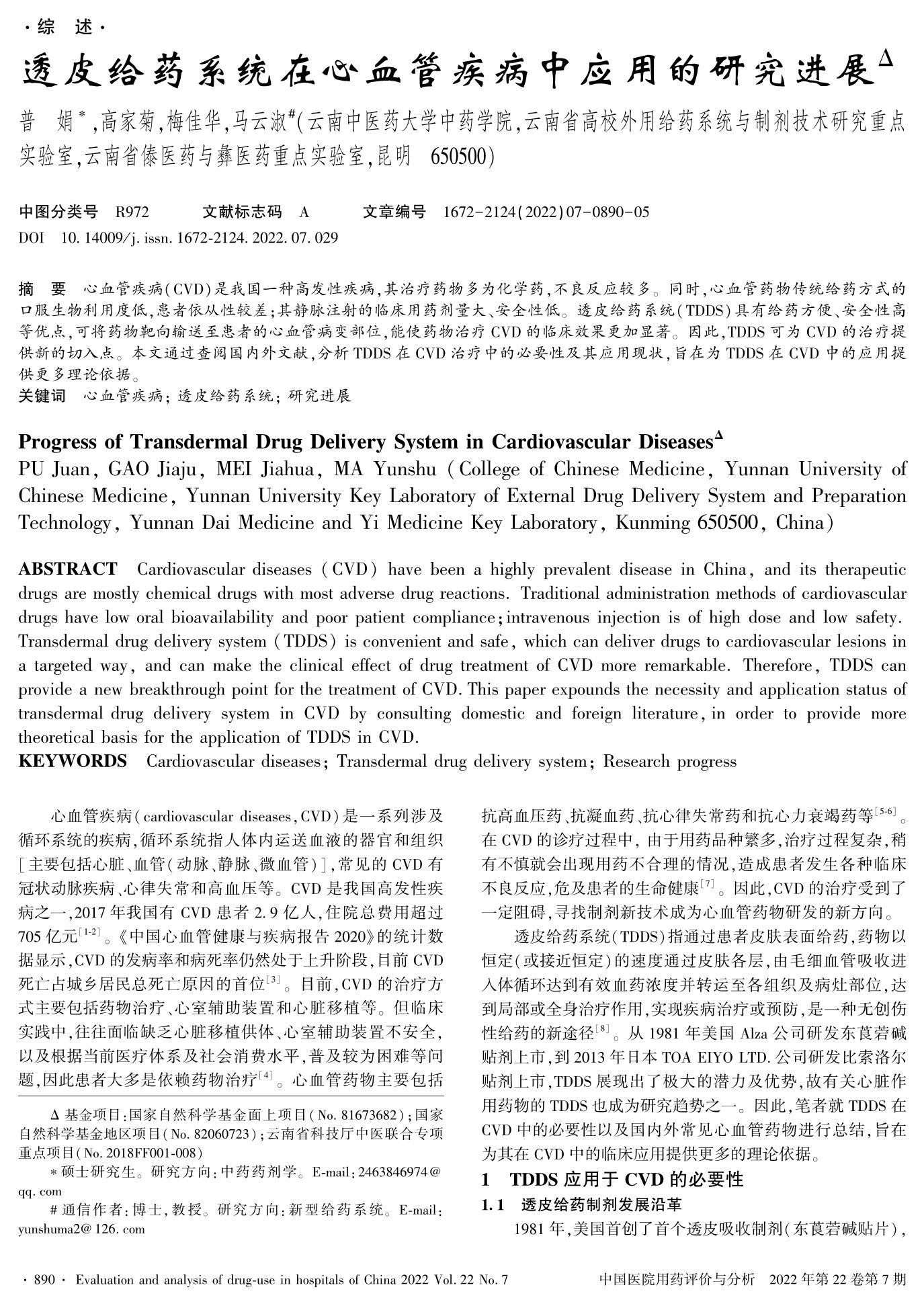 透皮給藥系統(tǒng)在心血管疾病中應用的研究進展