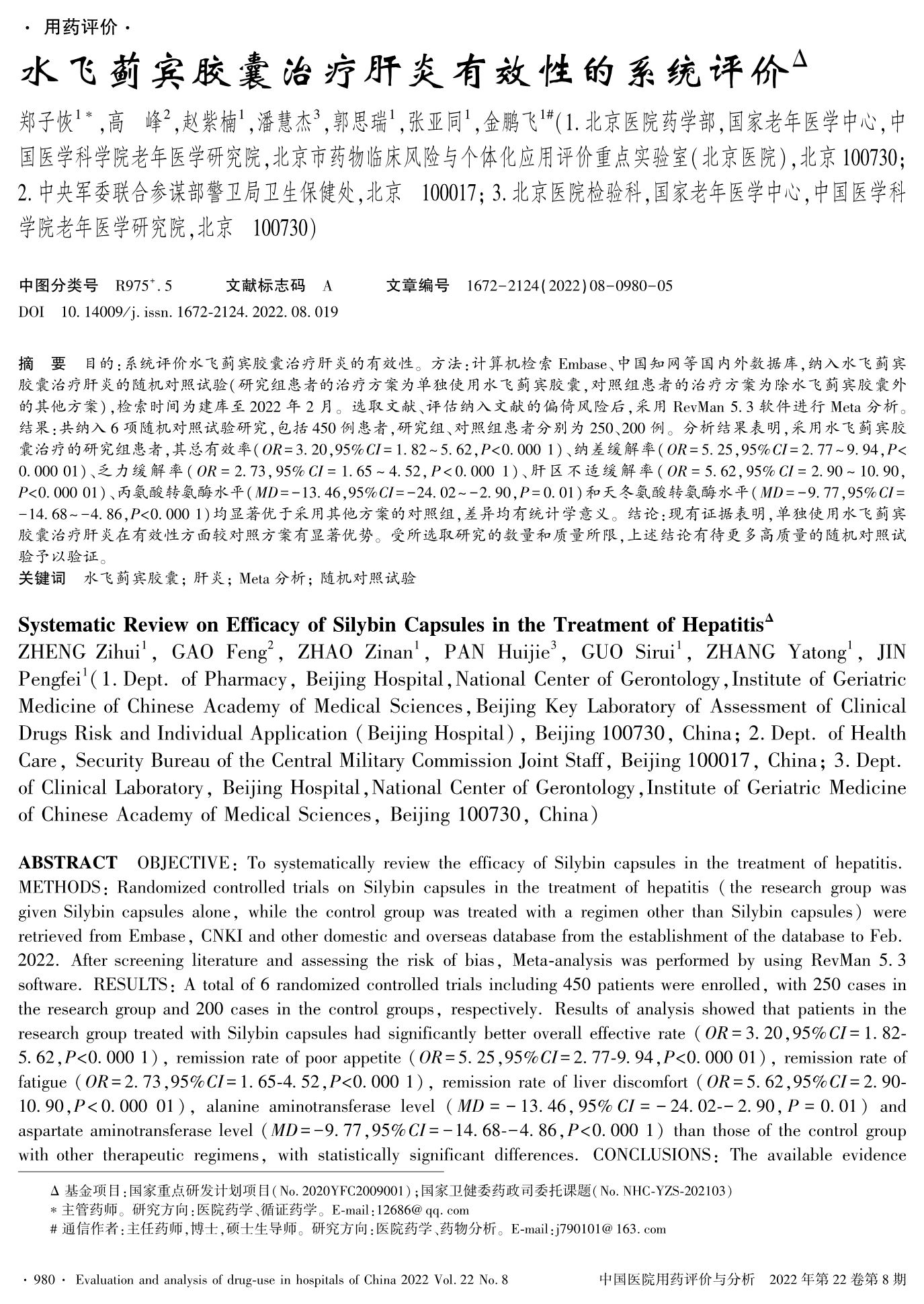 水飛薊賓膠囊治療肝炎有效性的系統(tǒng)評價