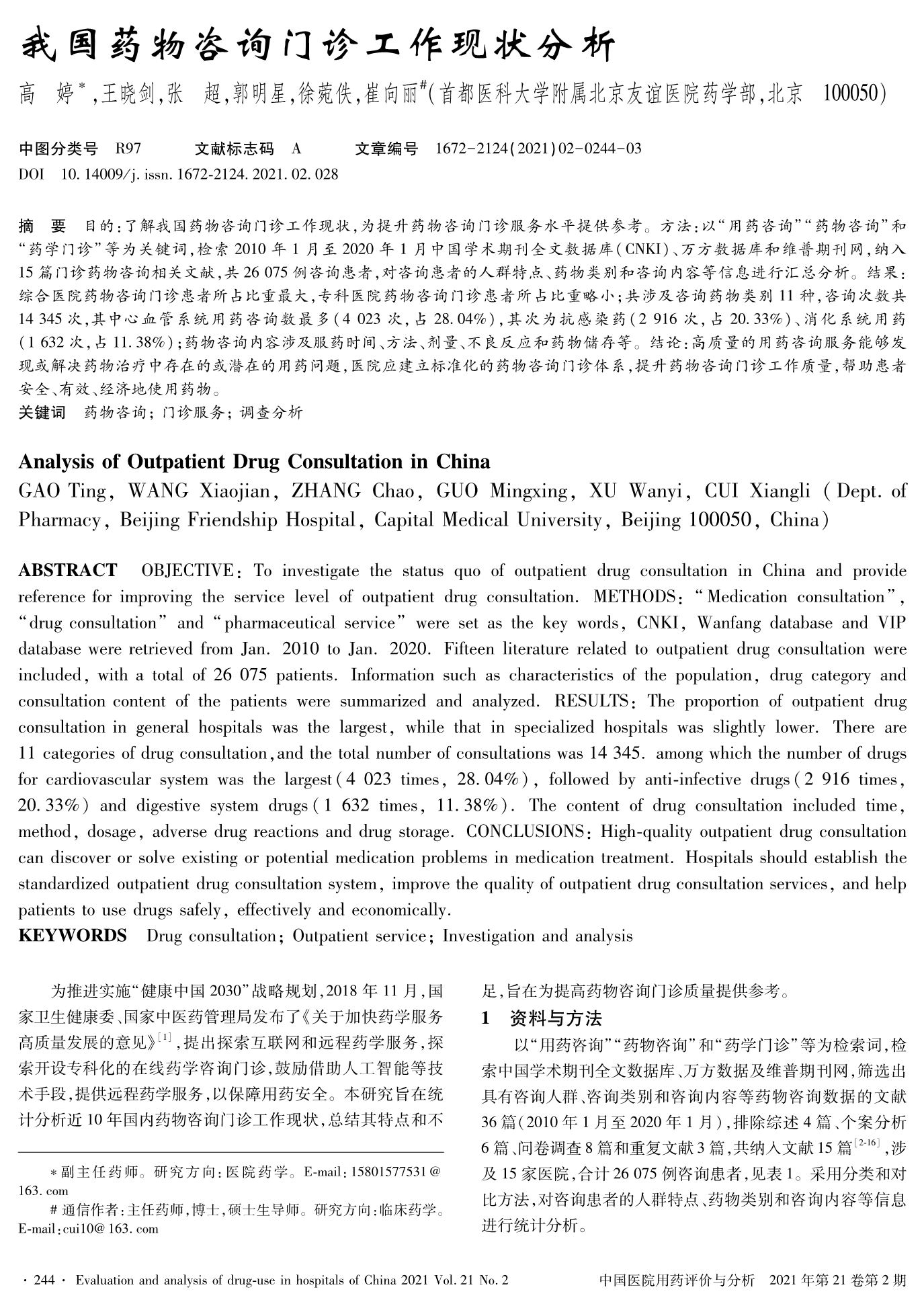 我國(guó)藥物咨詢門診工作現(xiàn)狀分析