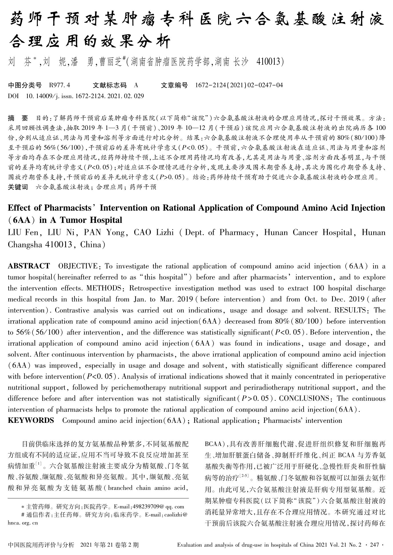 藥師干預對某腫瘤專科醫(yī)院六合氨基酸注射液合理應用的效果分析