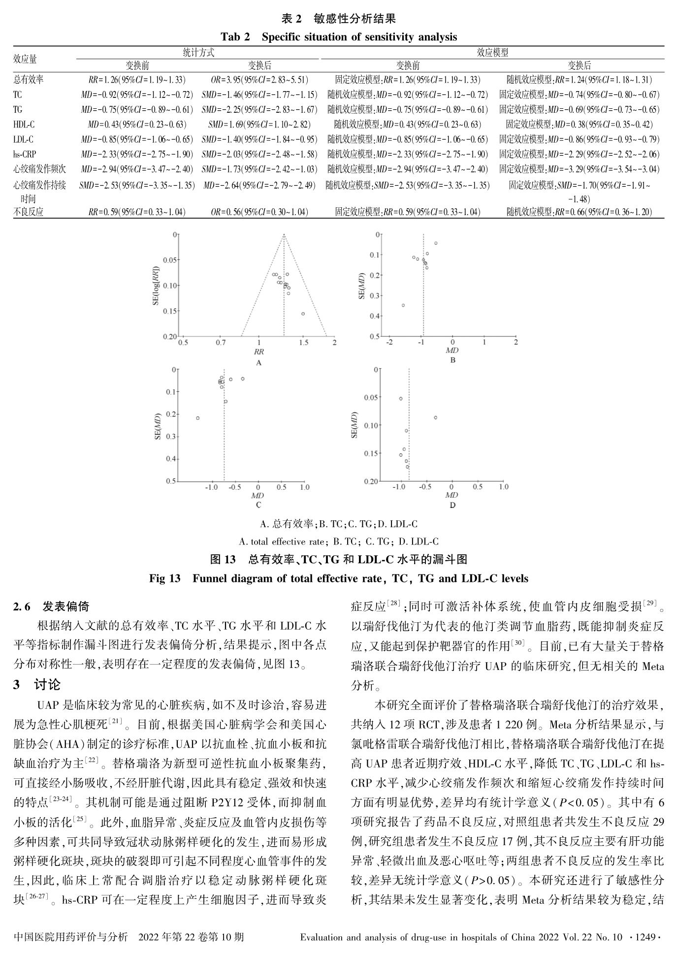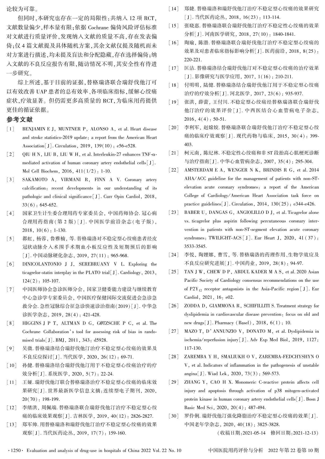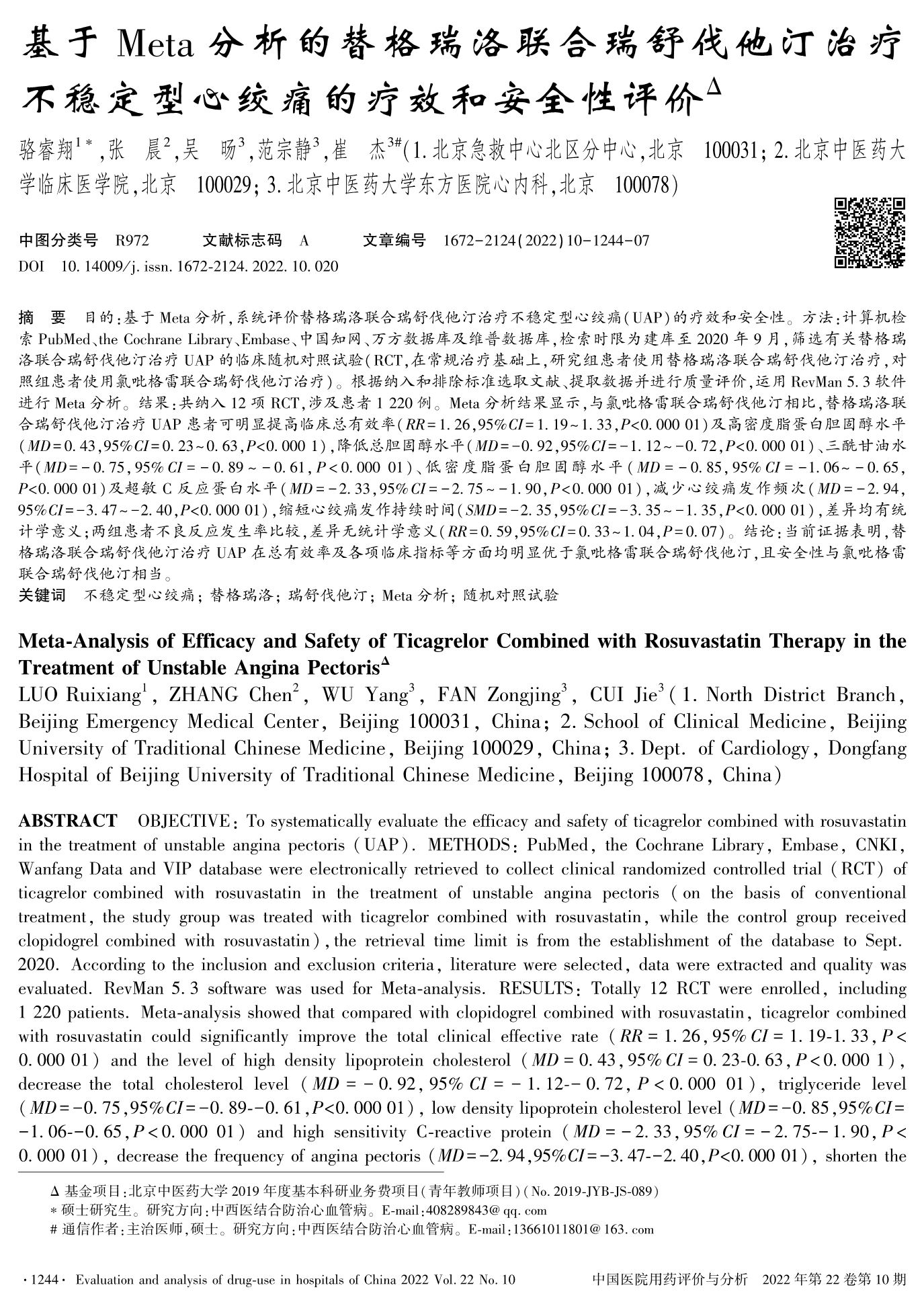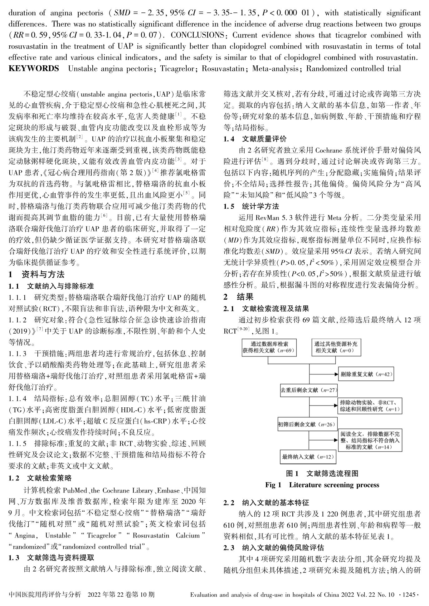 基于Meta分析的替格瑞洛聯(lián)合瑞舒伐他汀治療不穩(wěn)定型心絞痛的療效和安全性評價