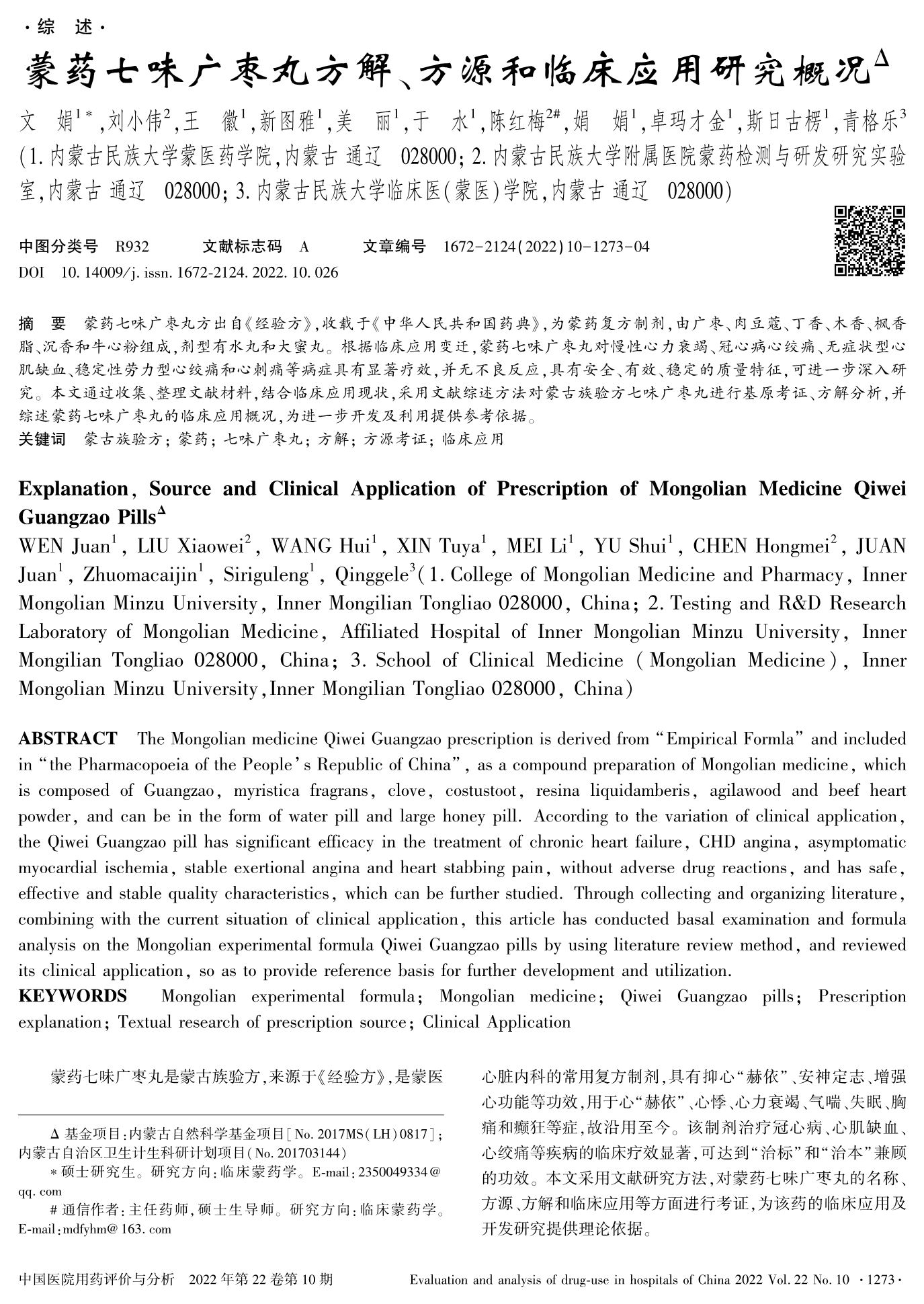 蒙藥七味廣棗丸方解、方源和臨床應(yīng)用研究概況