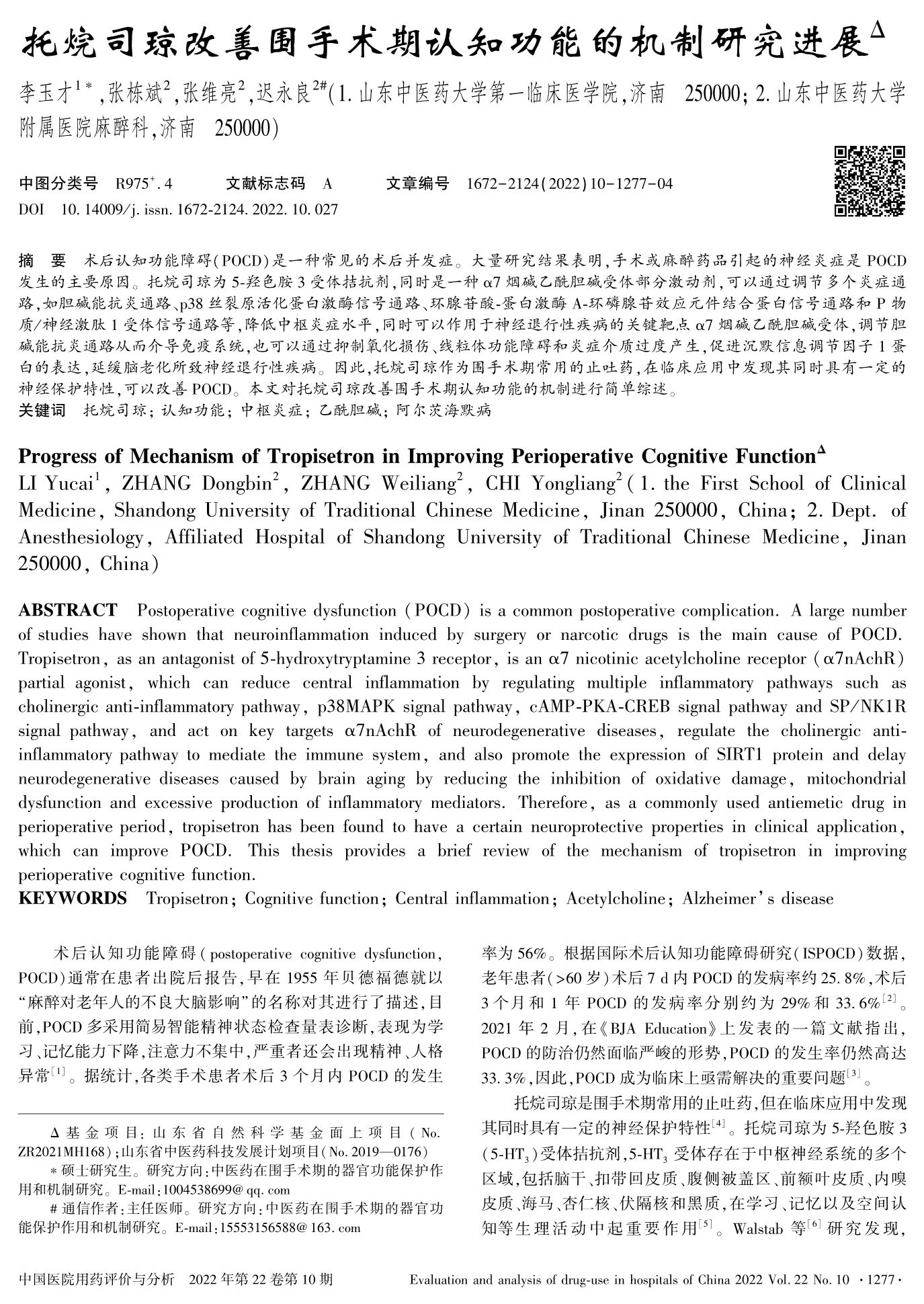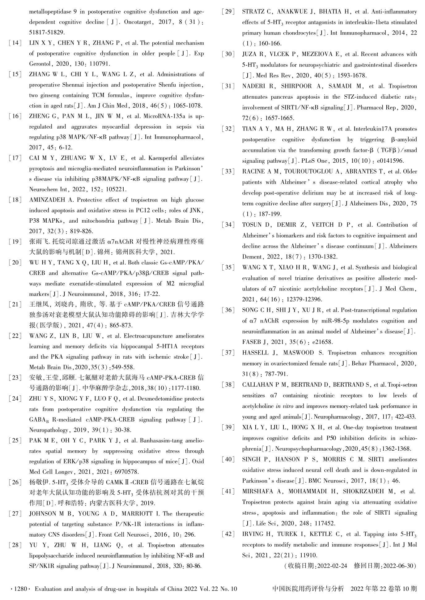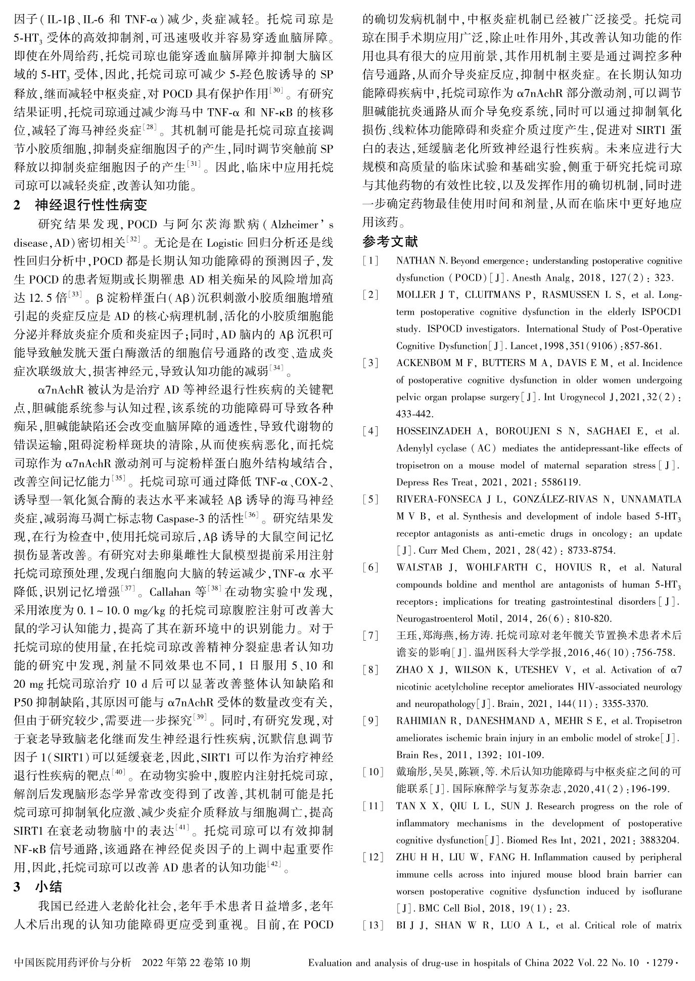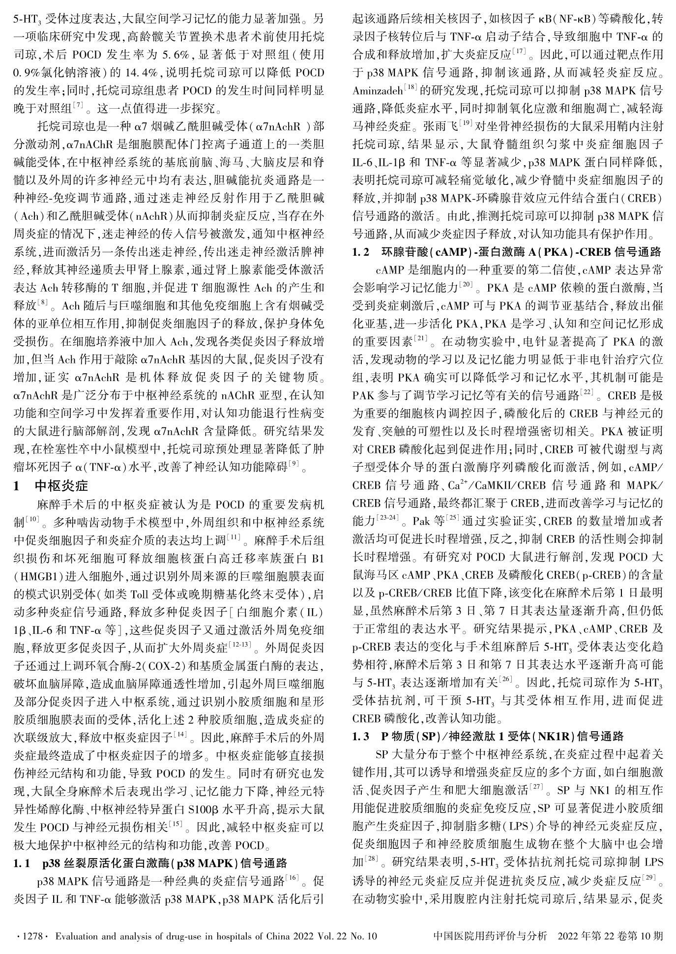 托烷司瓊改善圍手術(shù)期認(rèn)知功能的機(jī)制研究進(jìn)展