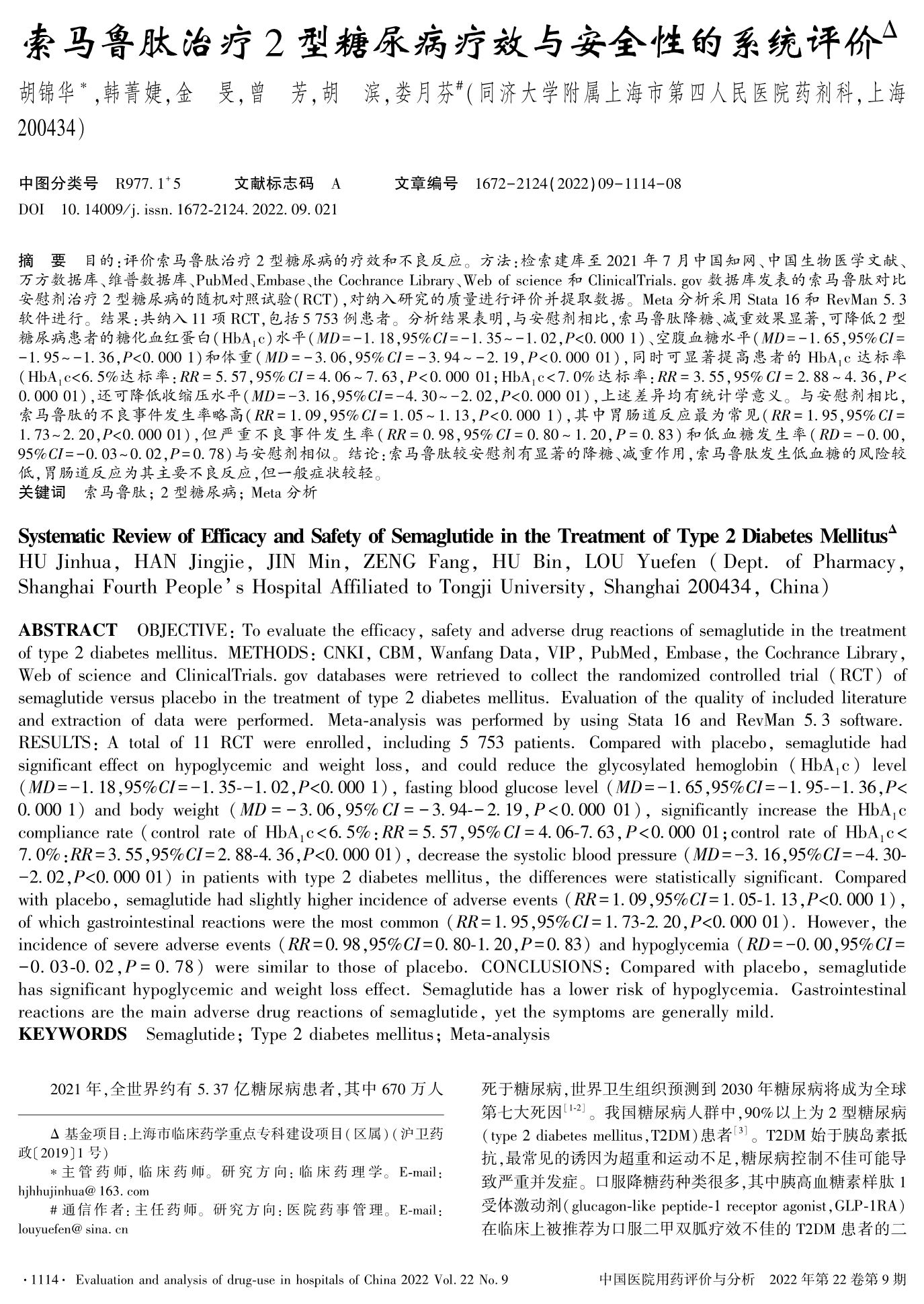 索馬魯肽治療2型糖尿病療效與安全性的系統(tǒng)評(píng)價(jià)