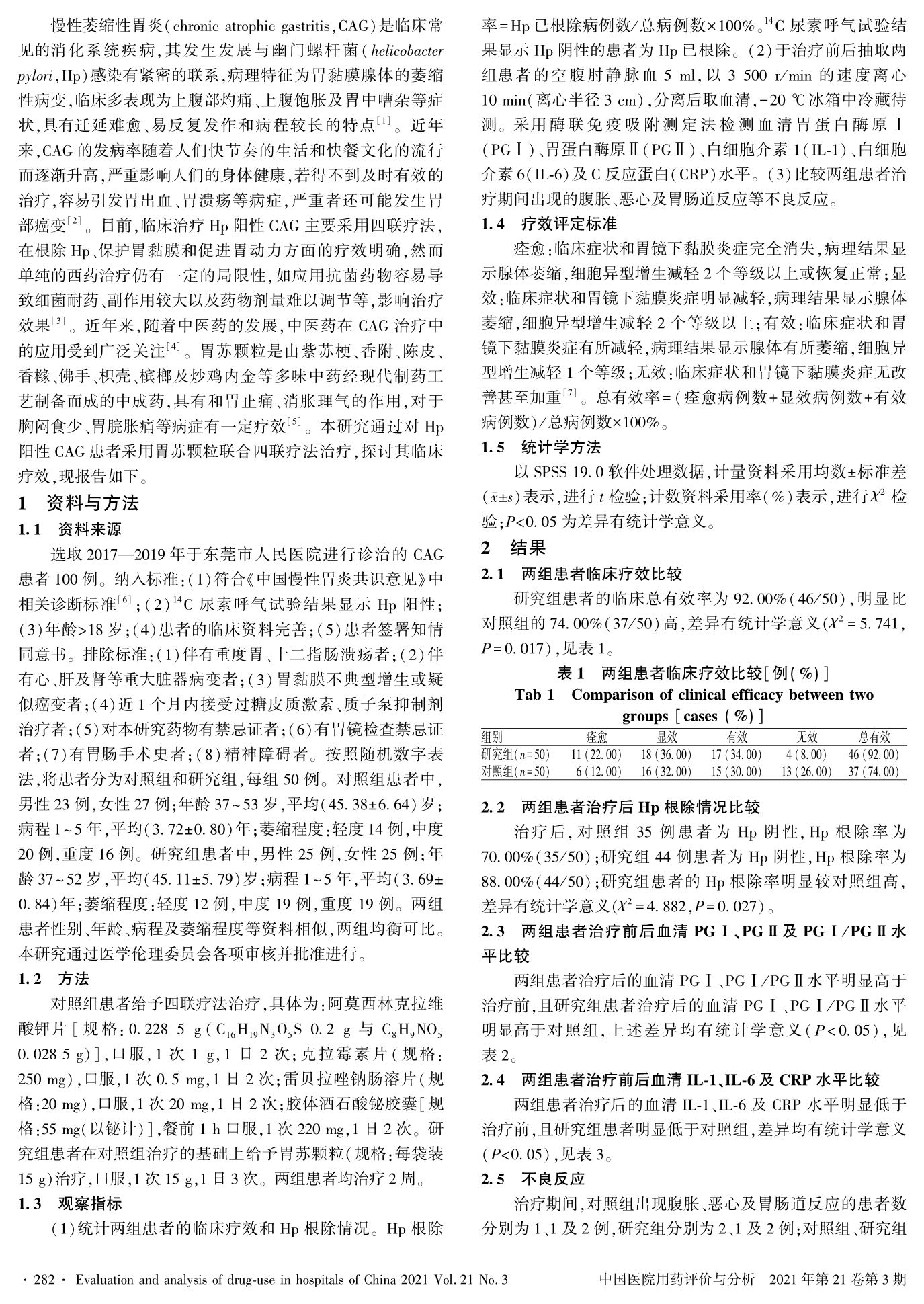 胃蘇顆粒聯(lián)合四聯(lián)療法治療幽門(mén)螺桿菌陽(yáng)性慢性萎縮性胃炎的療效觀察