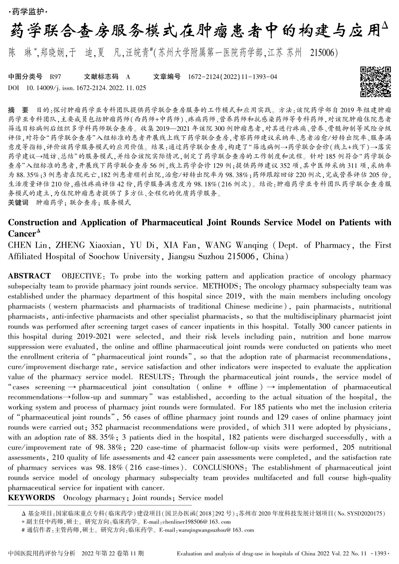 藥學(xué)聯(lián)合查房服務(wù)模式在腫瘤患者中的構(gòu)建與應(yīng)用