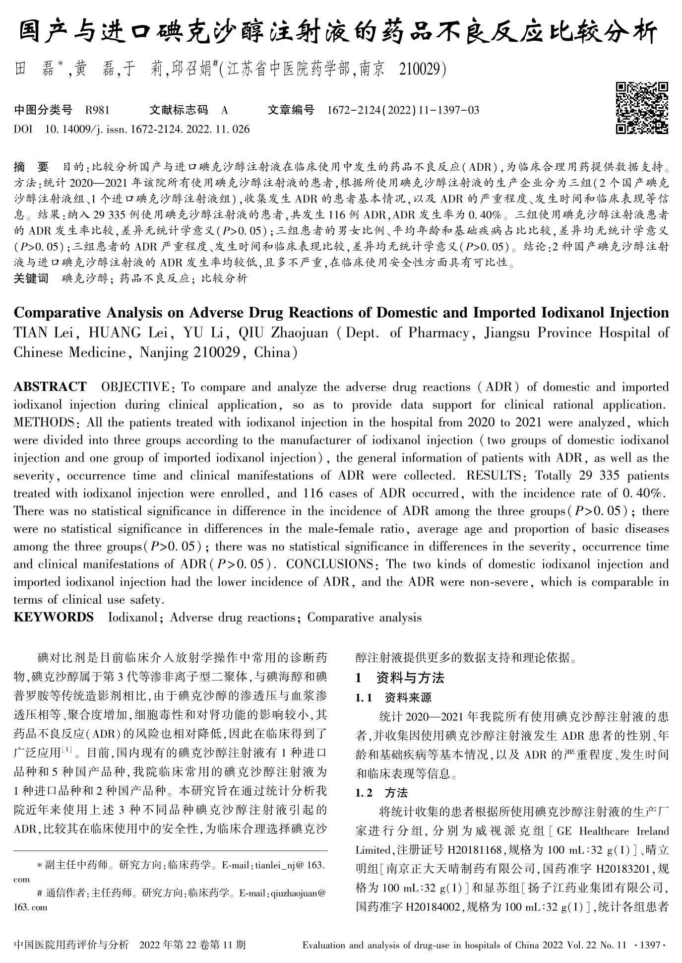 國產(chǎn)與進口碘克沙醇注射液的藥品不良反應(yīng)比較分析