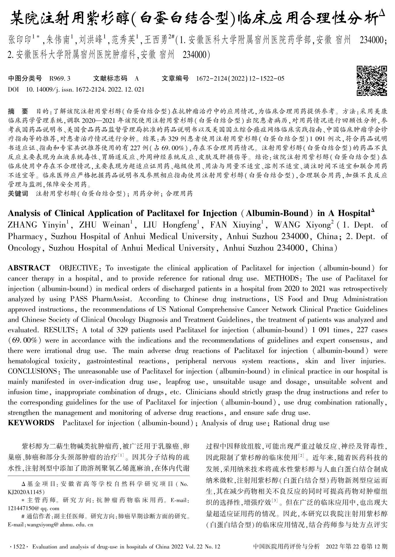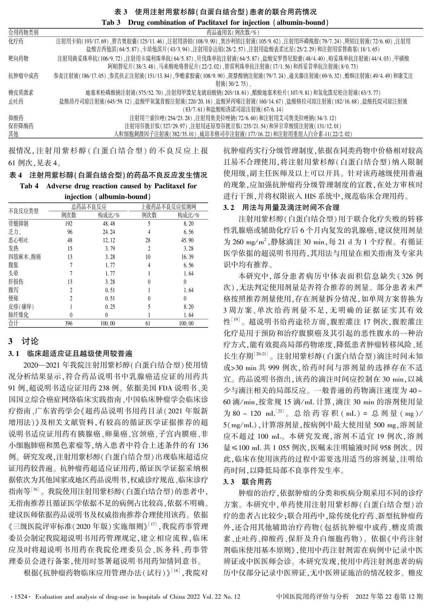 某院注射用紫杉醇(白蛋白結(jié)合型)臨床應(yīng)用合理性分析