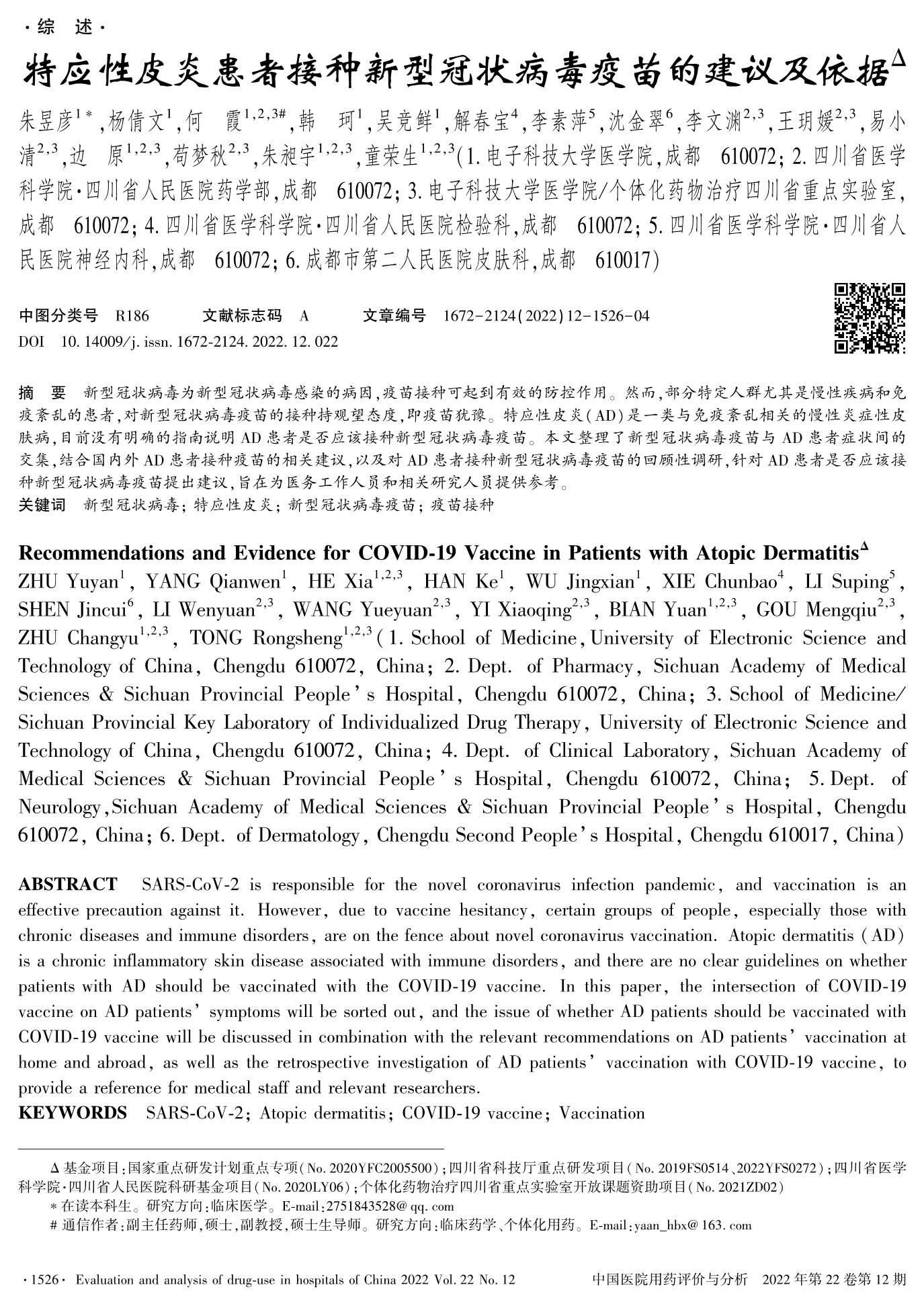 作者:朱昱彥、楊倩文、何霞、韓珂、吳競鮮、解春寶、李素萍、沈金翠、李文淵、王玥媛、易小清、邊原、茍夢秋、朱昶宇、童榮生