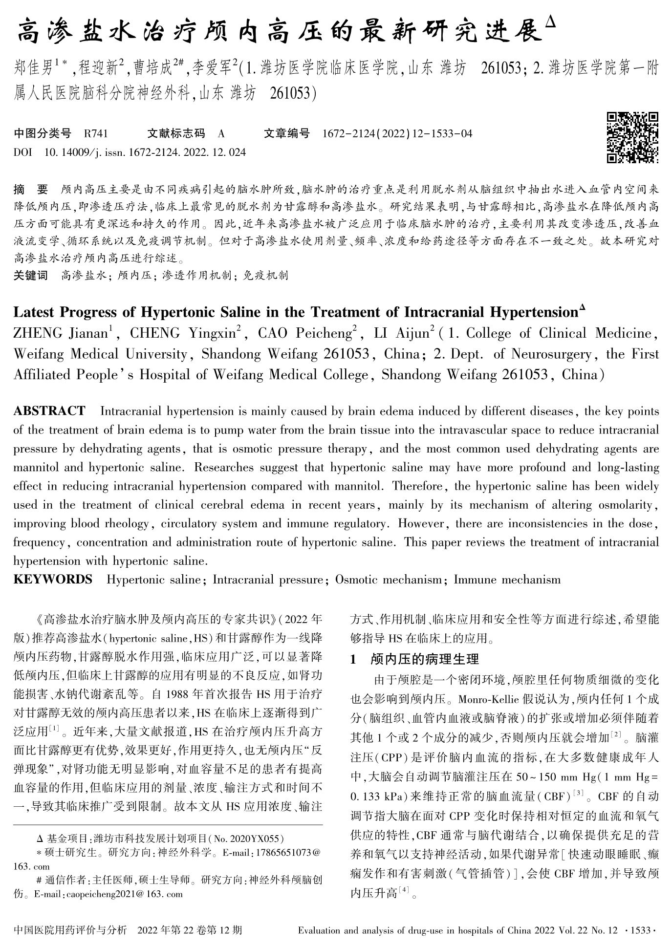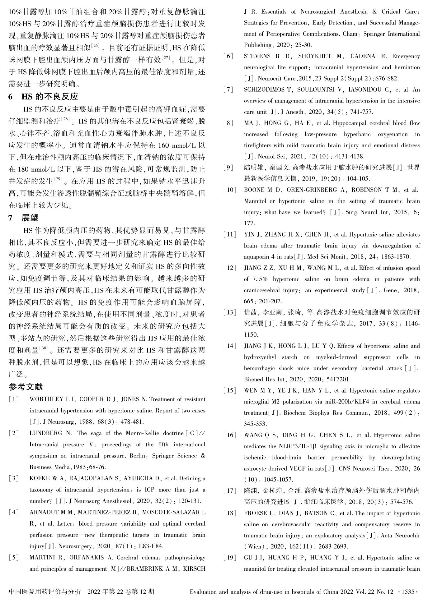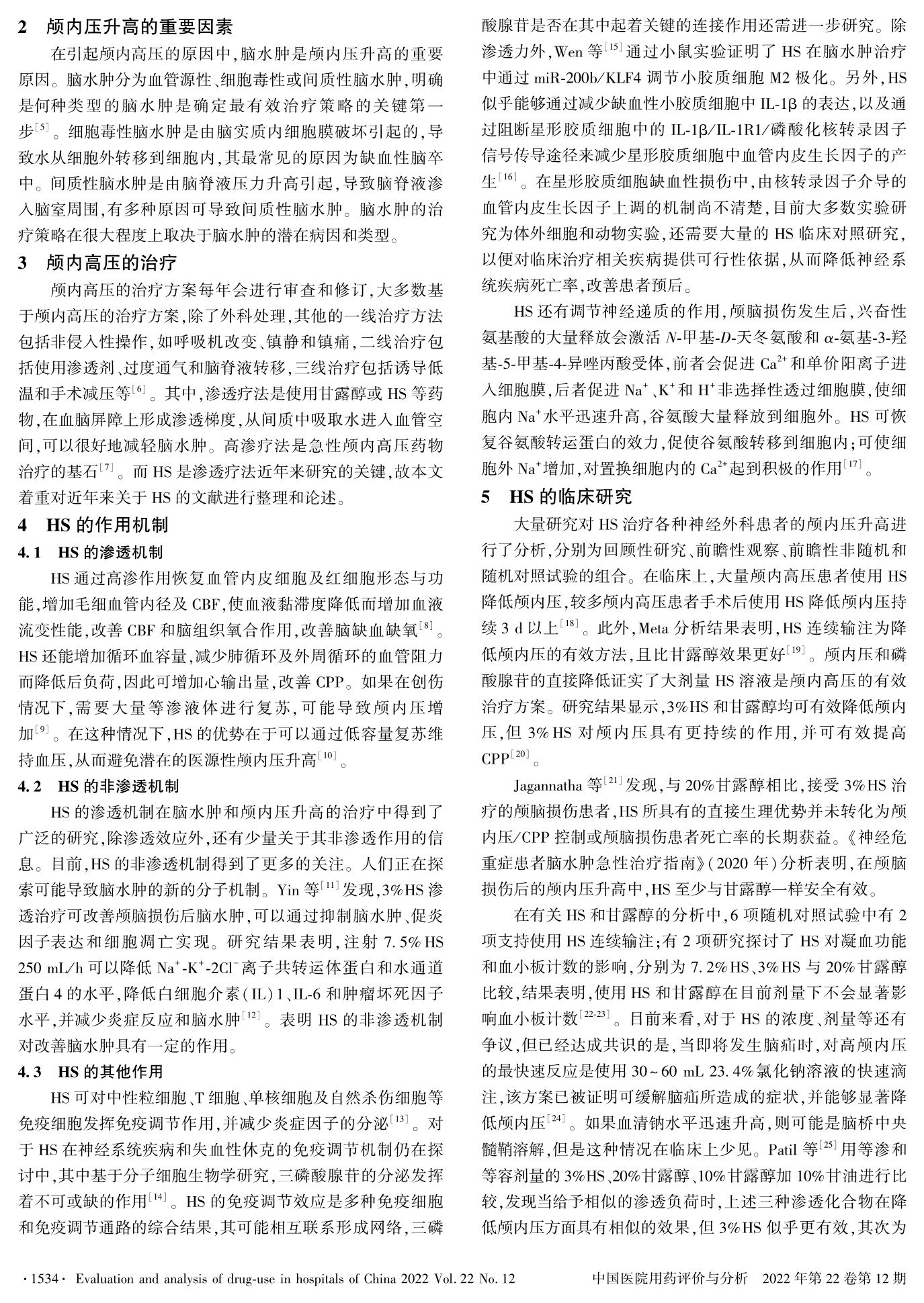 高滲鹽水治療顱內(nèi)高壓的最新研究進(jìn)展