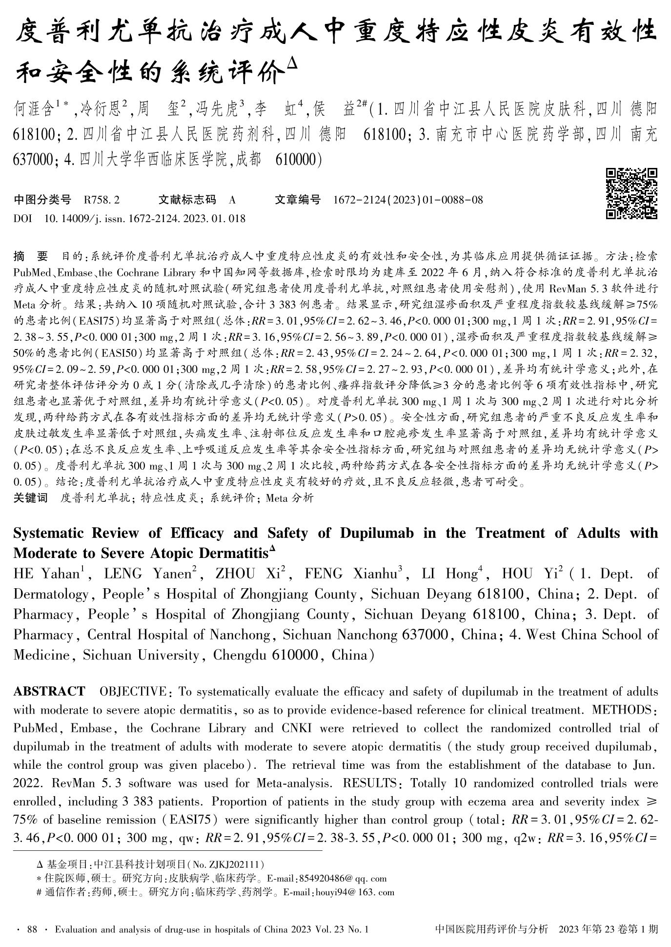 度普利尤單抗治療成人中重度特應(yīng)性皮炎有效性和安全性的系統(tǒng)評價
