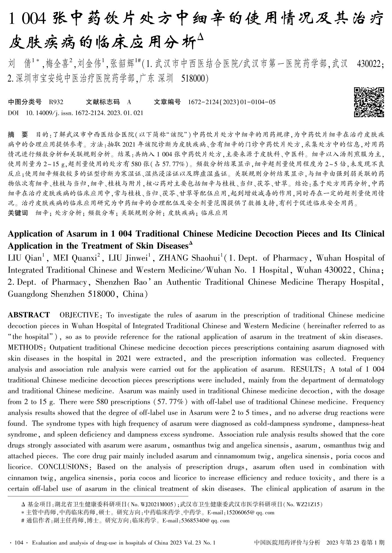 1004張中藥飲片處方中細辛的使用情況及其治療皮膚疾病的臨床應(yīng)用分析