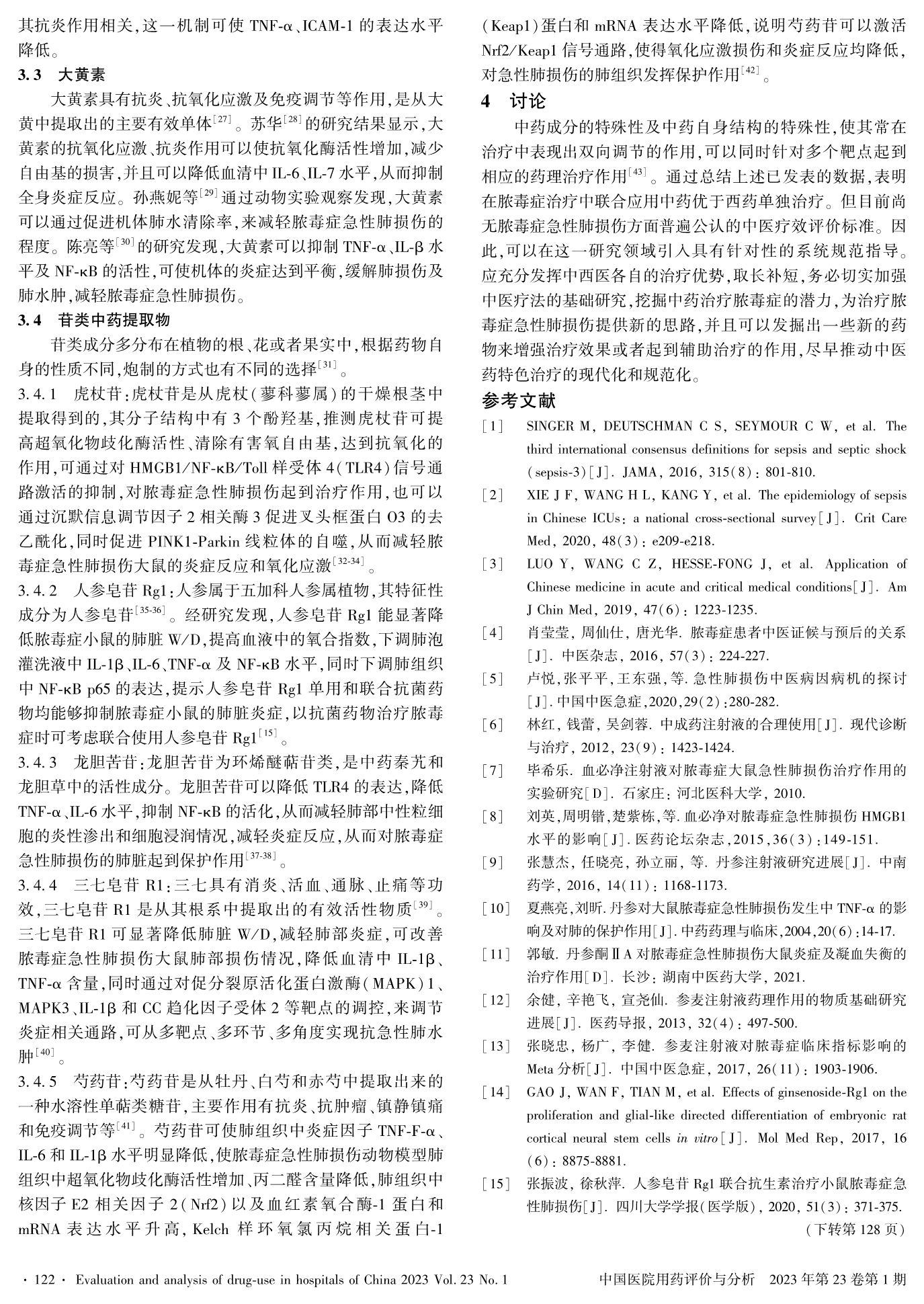 中藥注射劑和中藥提取物治療膿毒癥急性肺損傷的研究進(jìn)展
