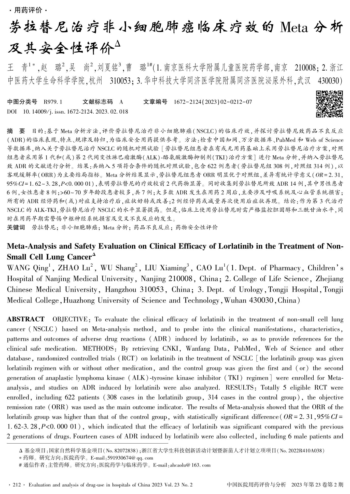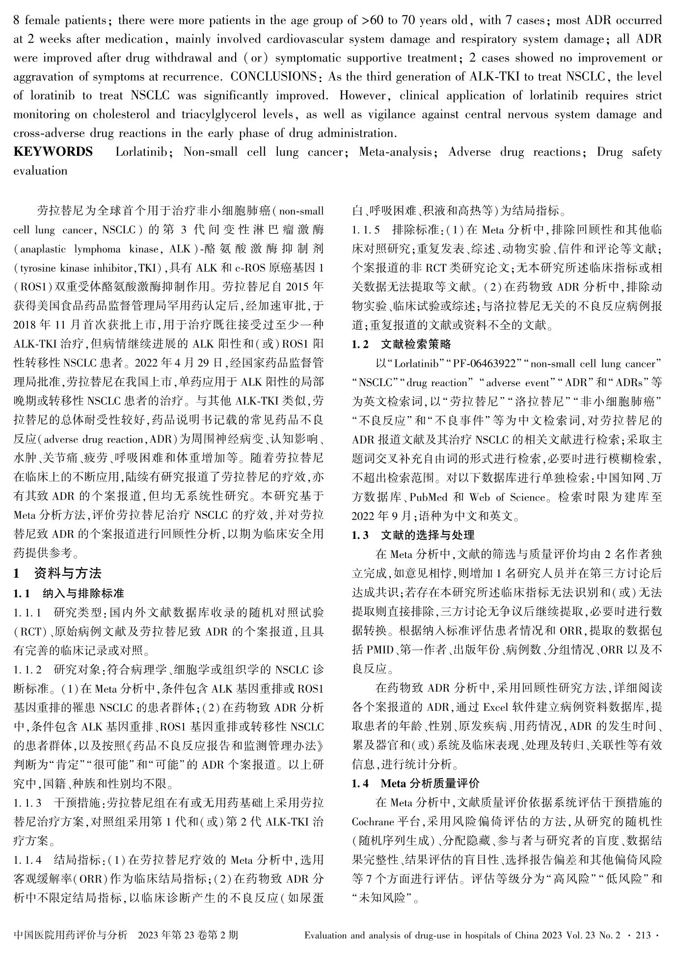 勞拉替尼治療非小細胞肺癌臨床療效的Meta分析及其安全性評價