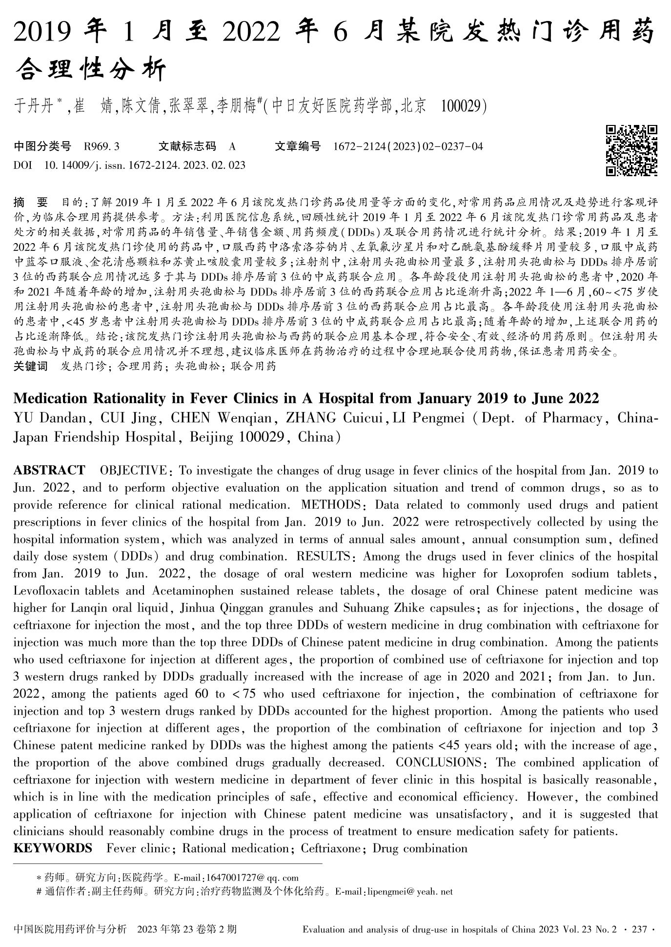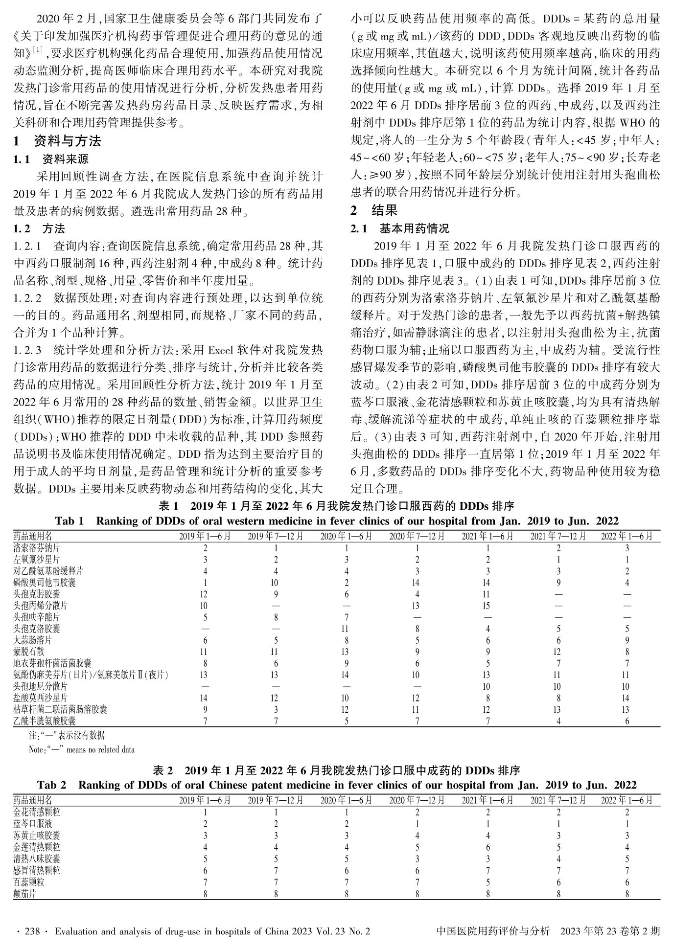 2019年1月至2022年6月某院發(fā)熱門診用藥合理性分析