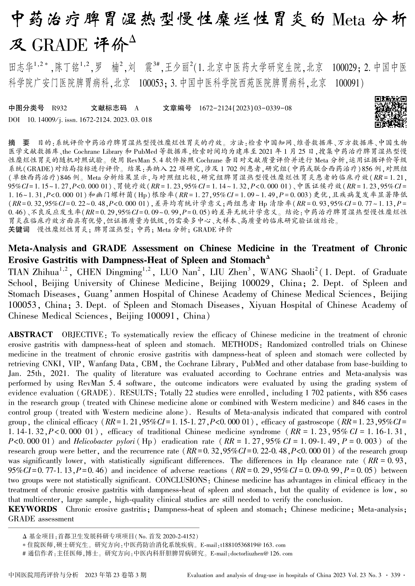 中藥治療脾胃濕熱型慢性糜爛性胃炎的Meta分析及GRADE評(píng)價(jià)