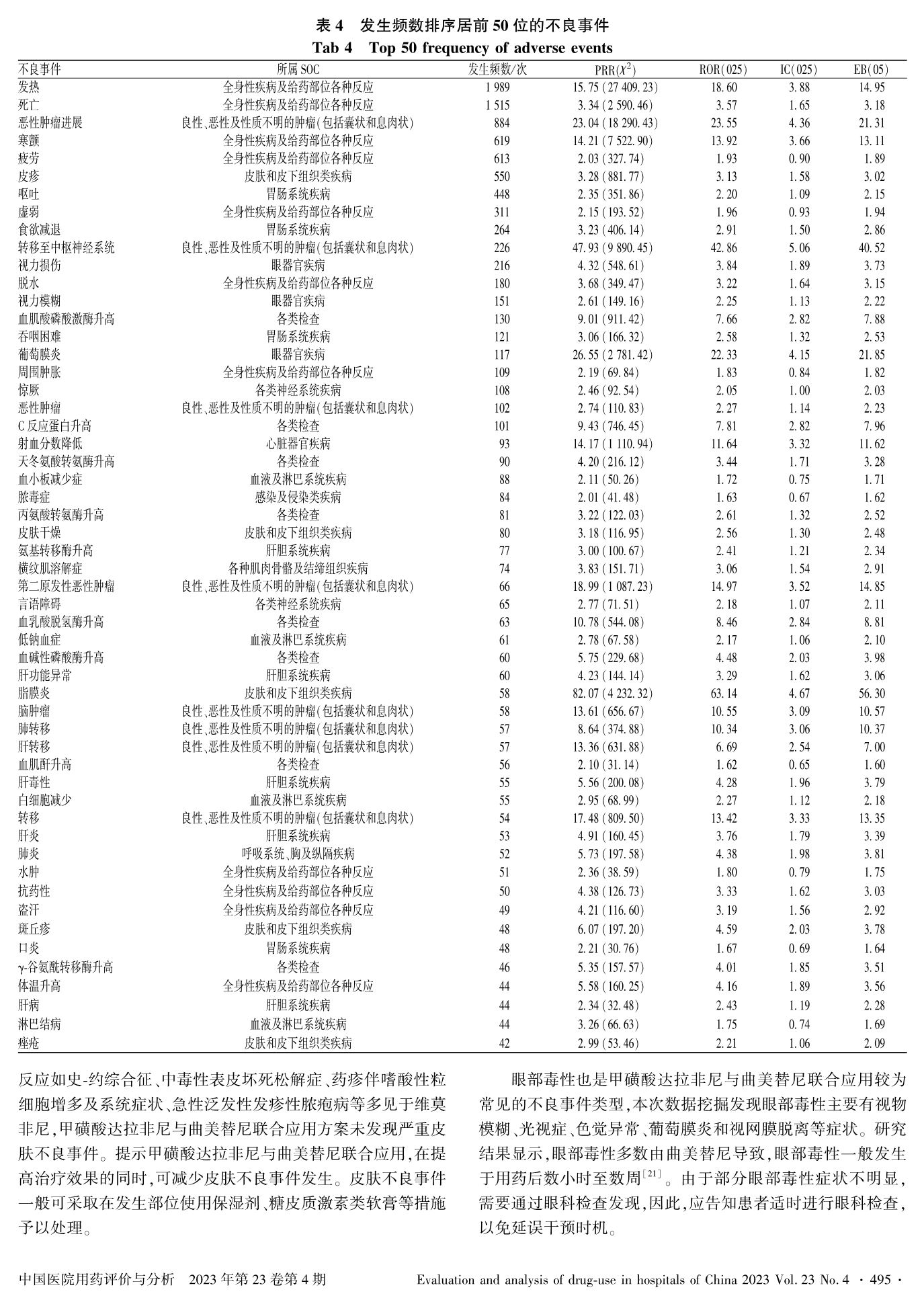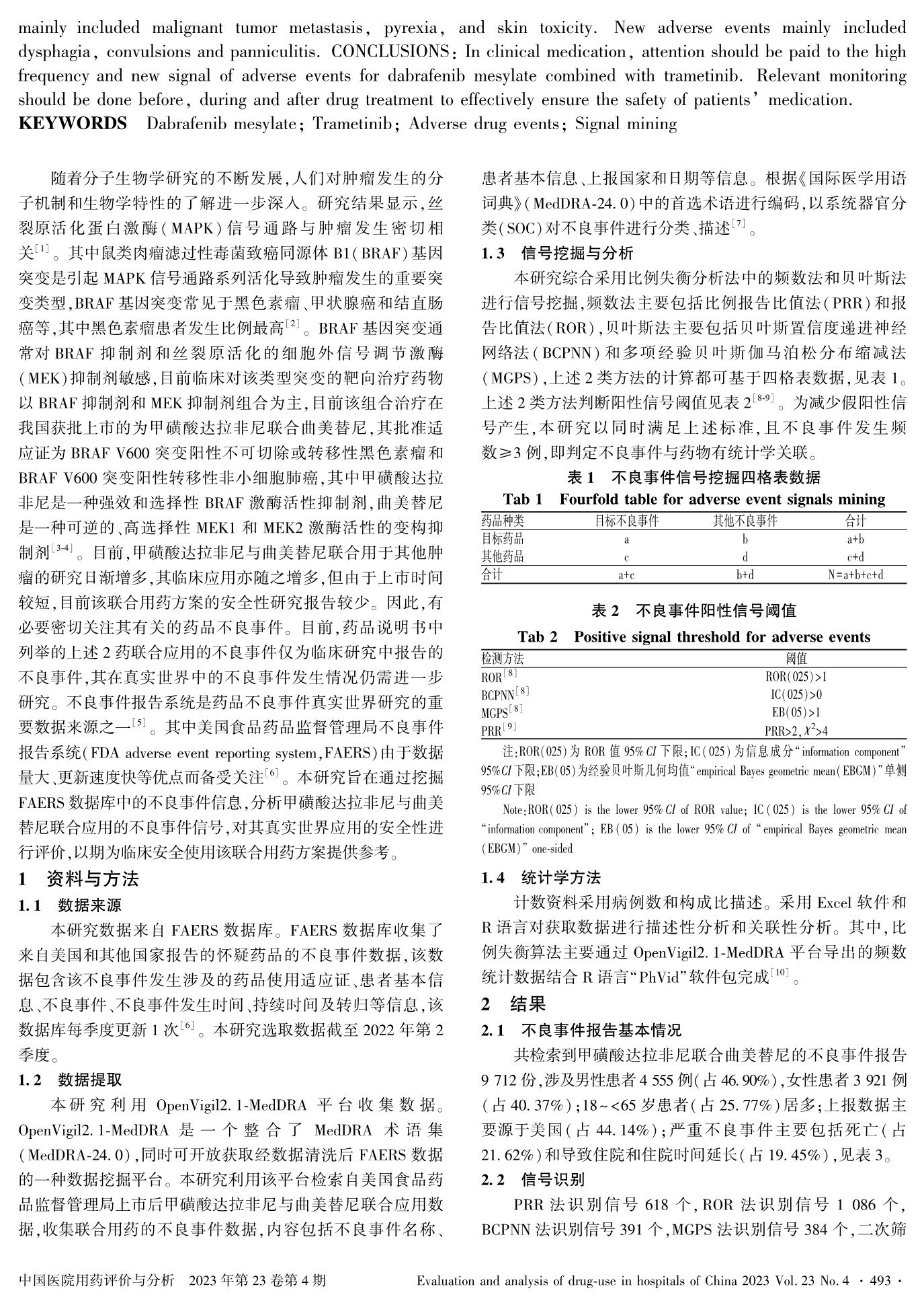 基于FAERS數(shù)據(jù)庫的甲磺酸達拉非尼聯(lián)合曲美替尼致藥品不良事件信號挖掘