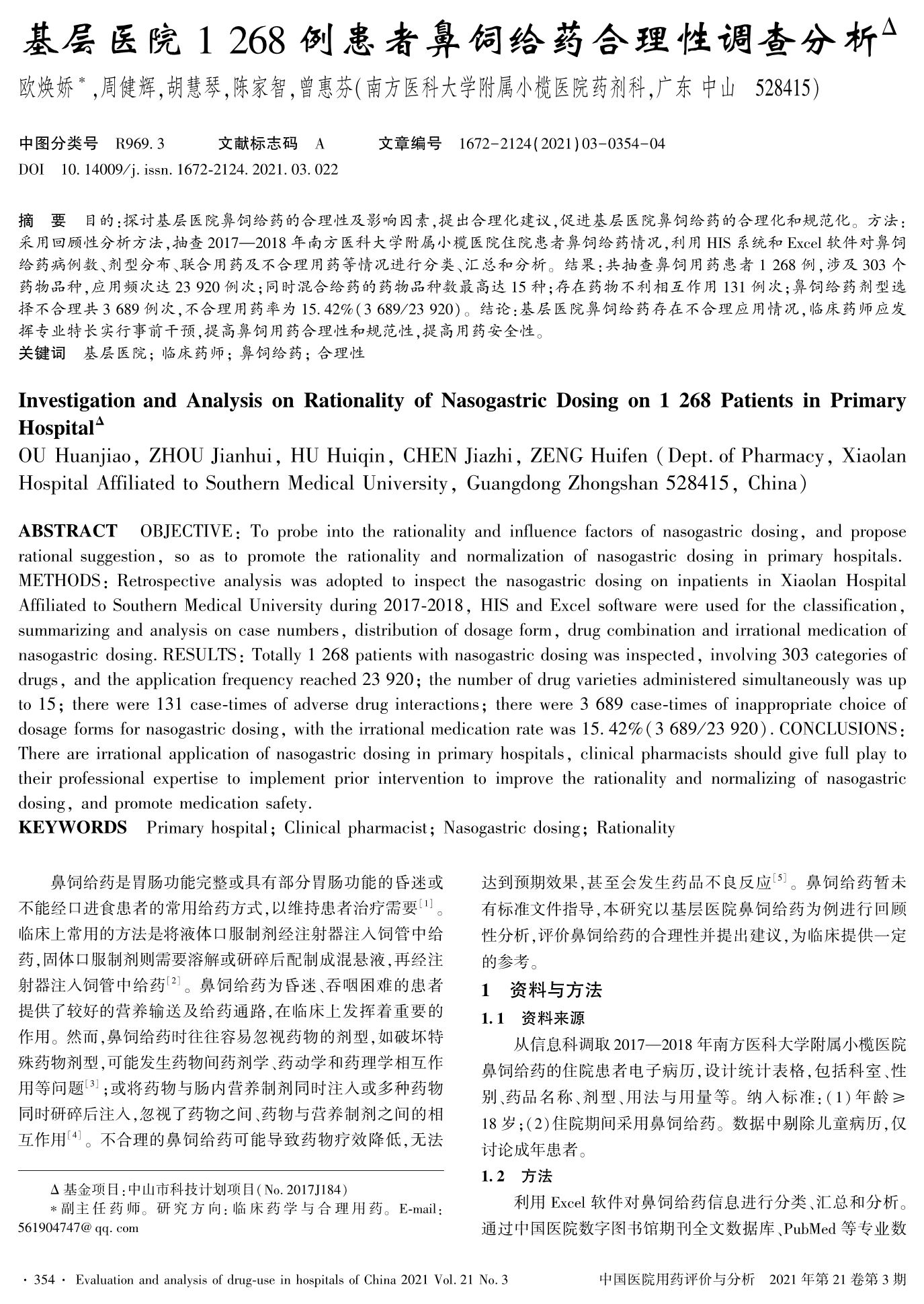基層醫(yī)院1268例患者鼻飼給藥合理性調(diào)查分析