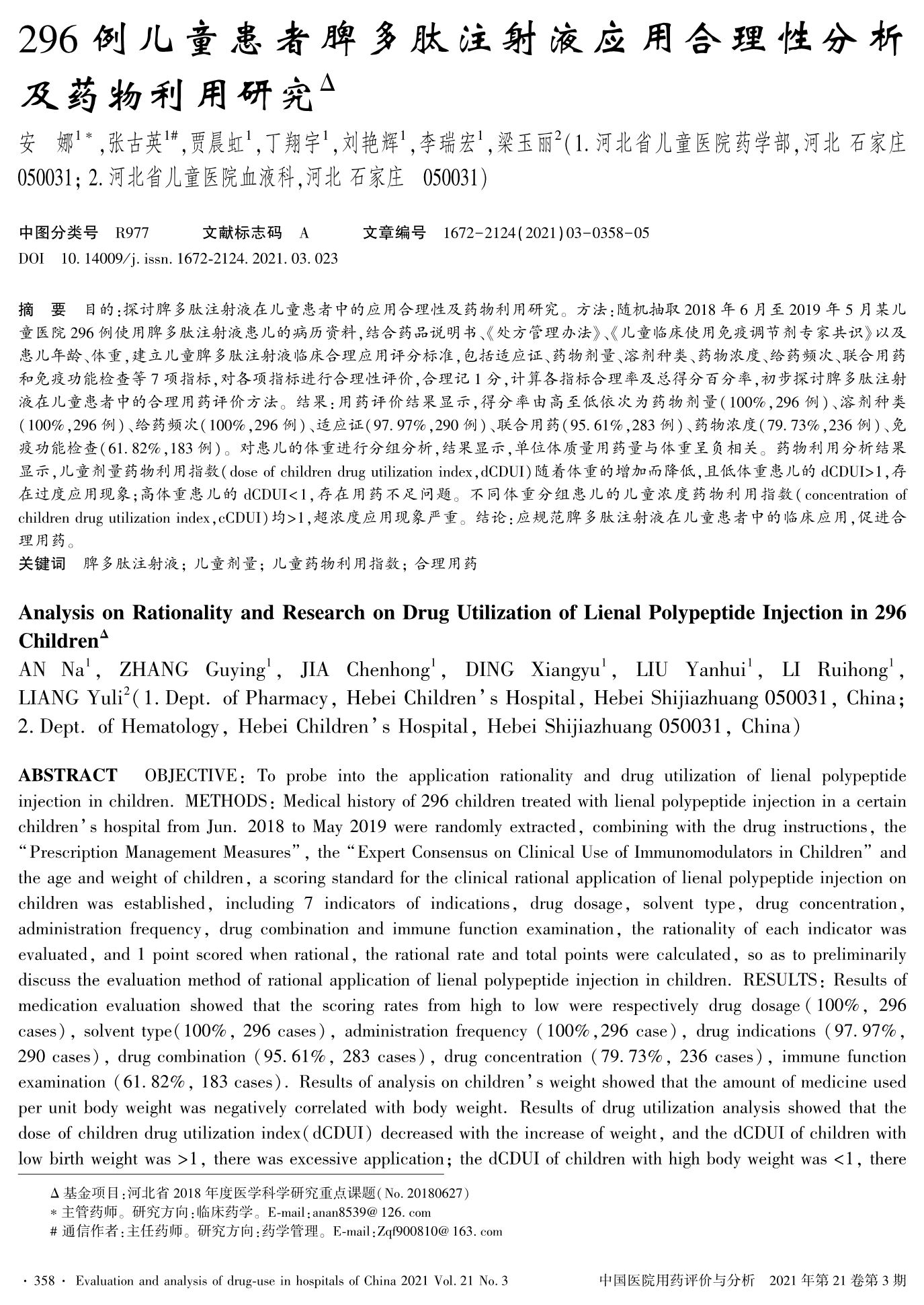 296例兒童患者脾多肽注射液應(yīng)用合理性分析及藥物利用研究
