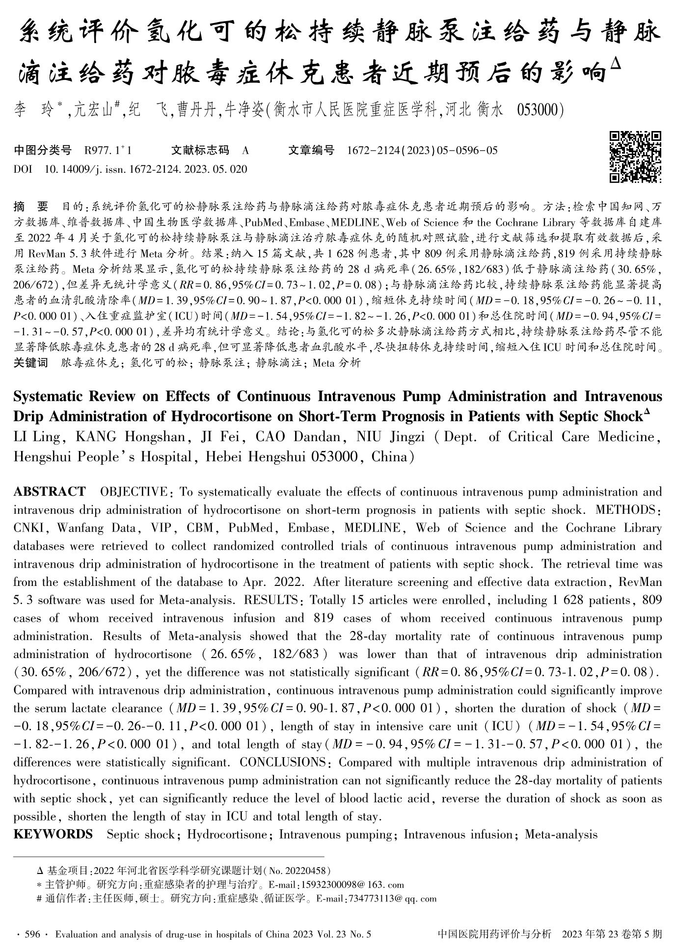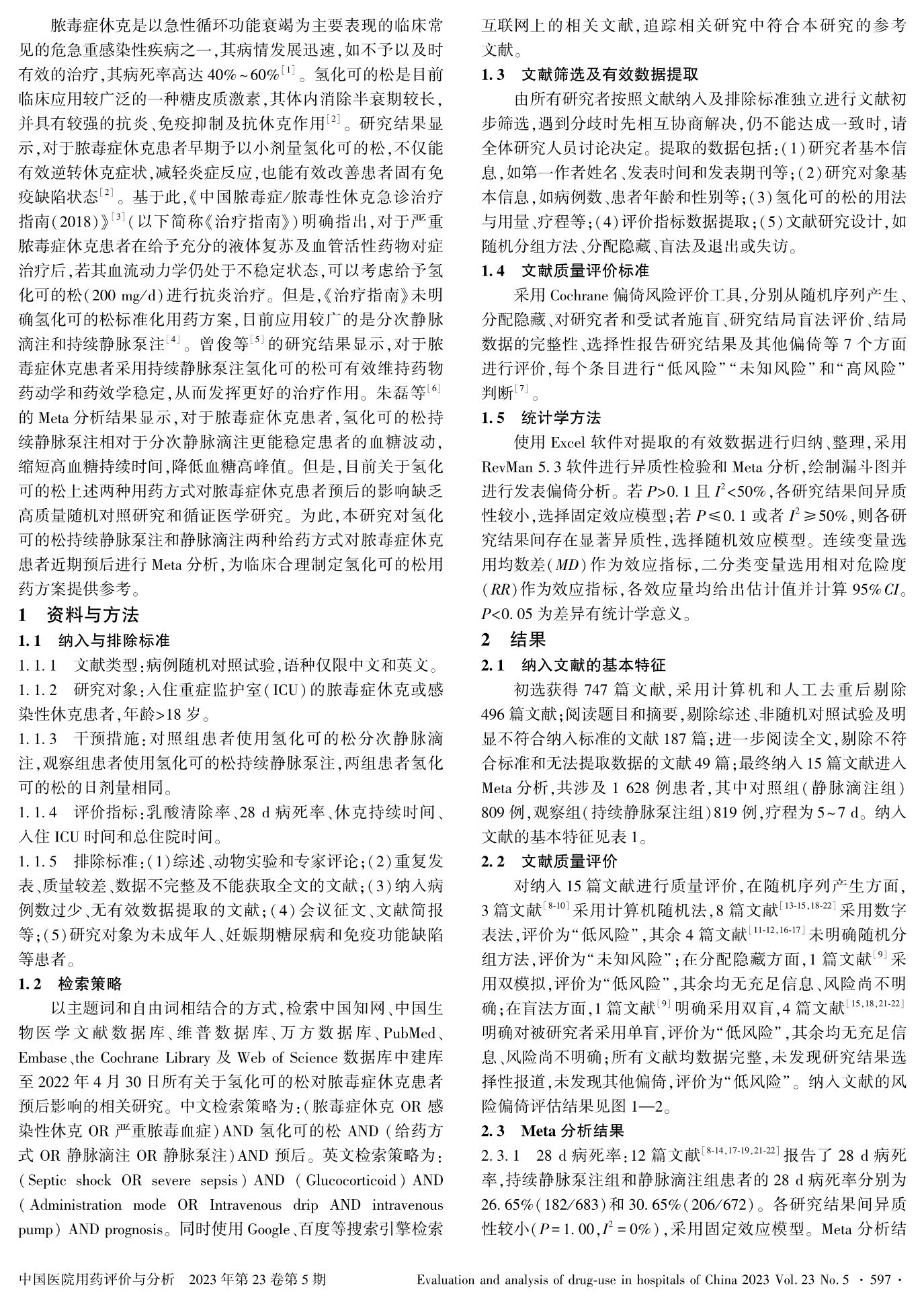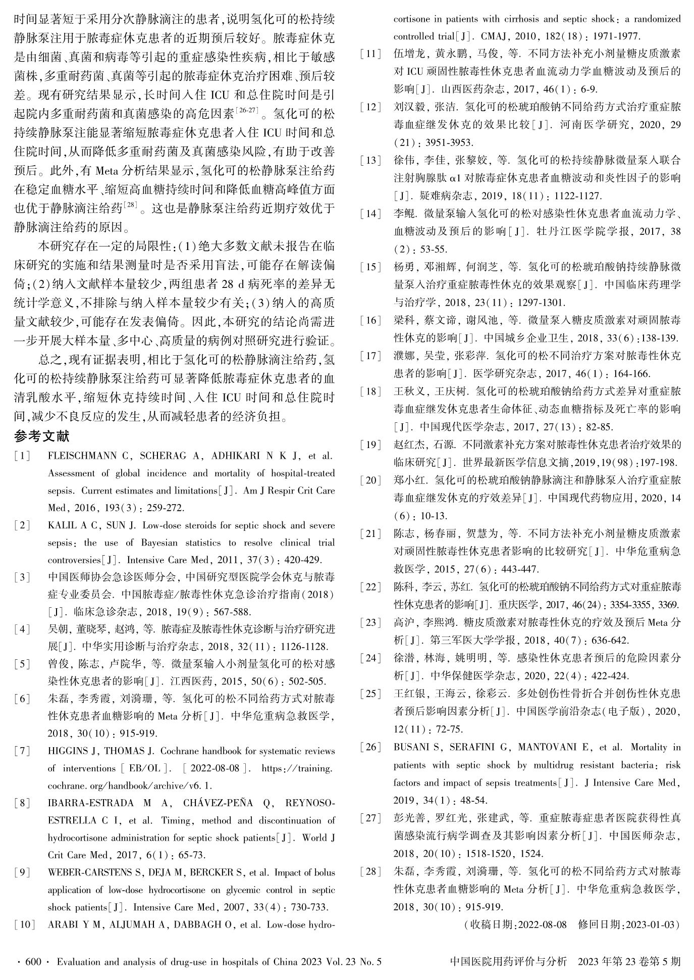 系統(tǒng)評價氫化可的松持續(xù)靜脈泵注給藥與靜脈滴注給藥對膿毒癥休克患者近期預(yù)后的影響
