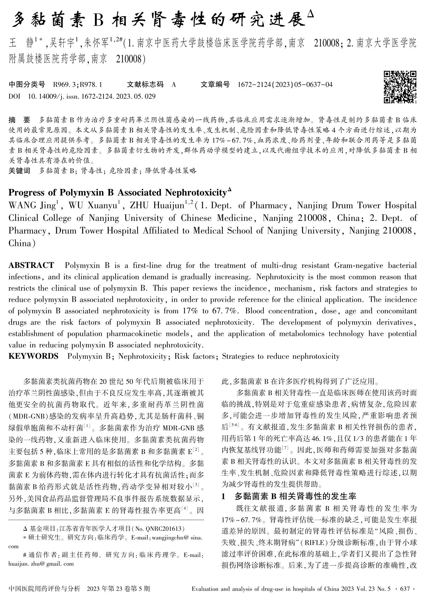 多黏菌素B相關(guān)腎毒性的研究進(jìn)展
