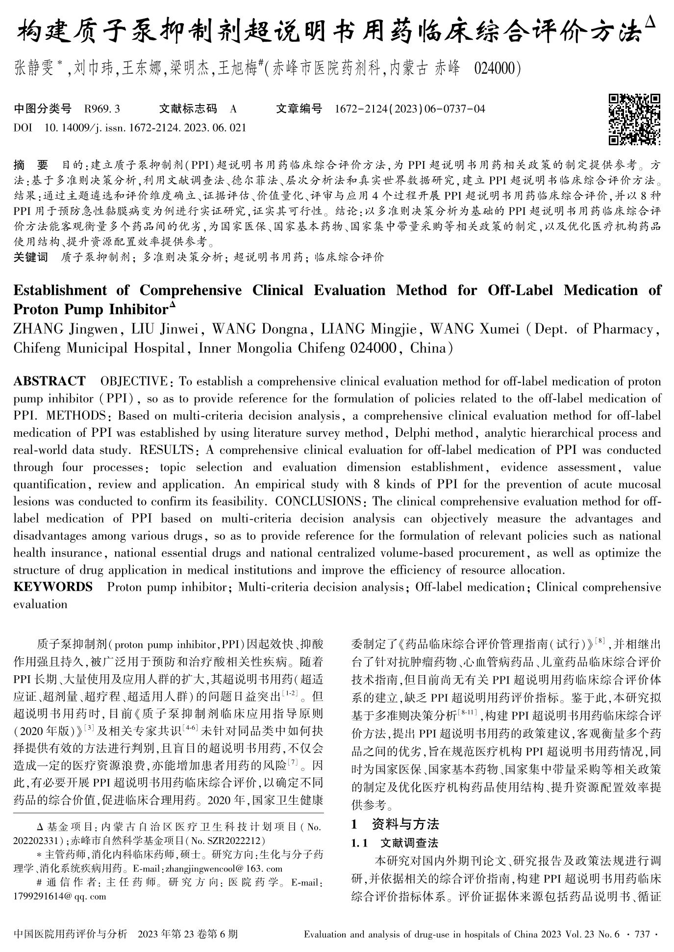構建質(zhì)子泵抑制劑超說明書用藥臨床綜合評價方法