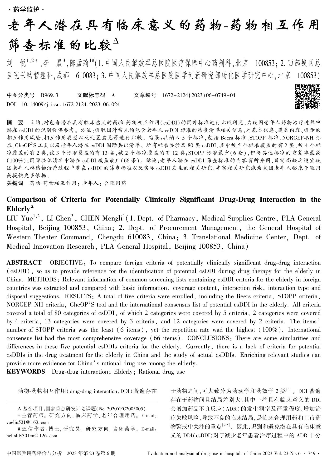 老年人潛在具有臨床意義的藥物-藥物相互作用篩查標(biāo)準(zhǔn)的比較