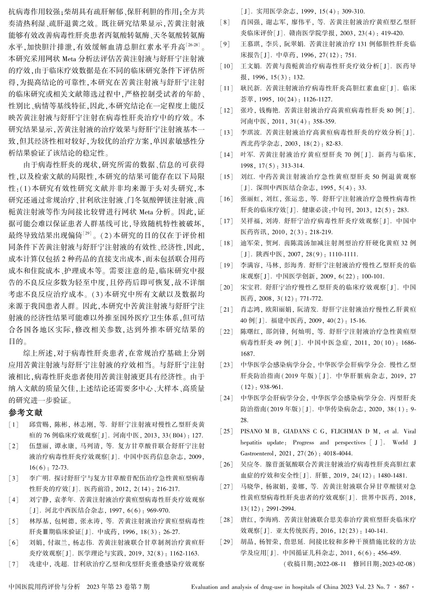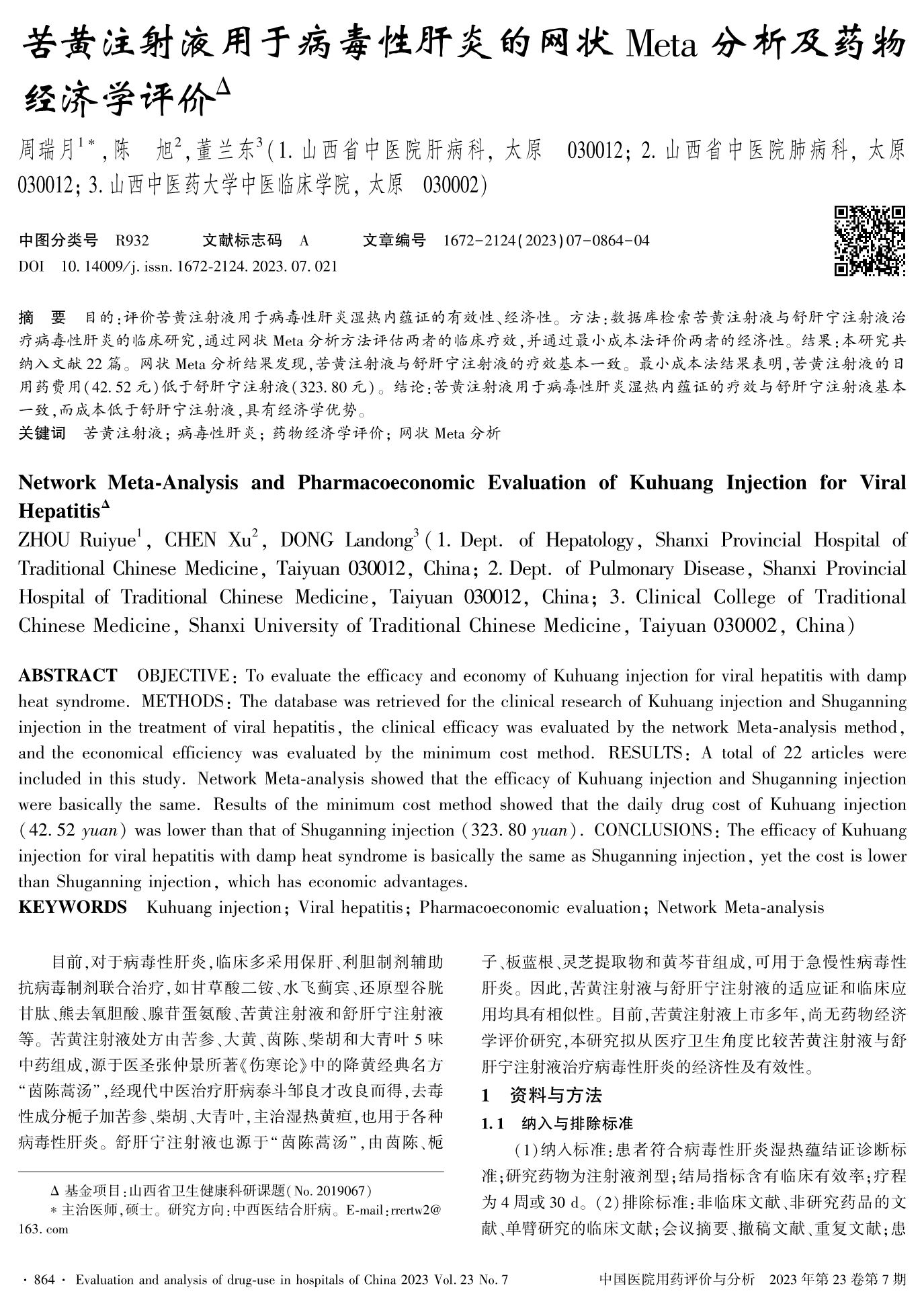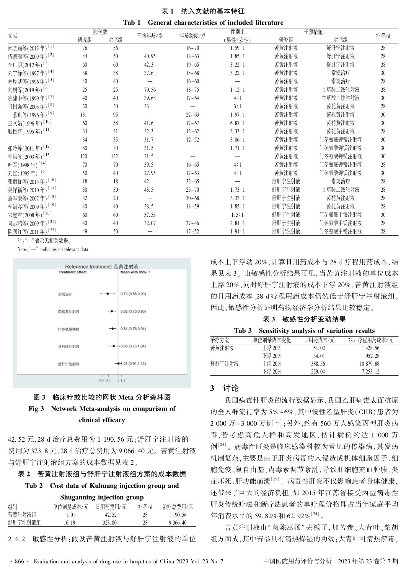 苦黃注射液用于病毒性肝炎的網(wǎng)狀Meta分析及藥物經(jīng)濟(jì)學(xué)評(píng)價(jià)